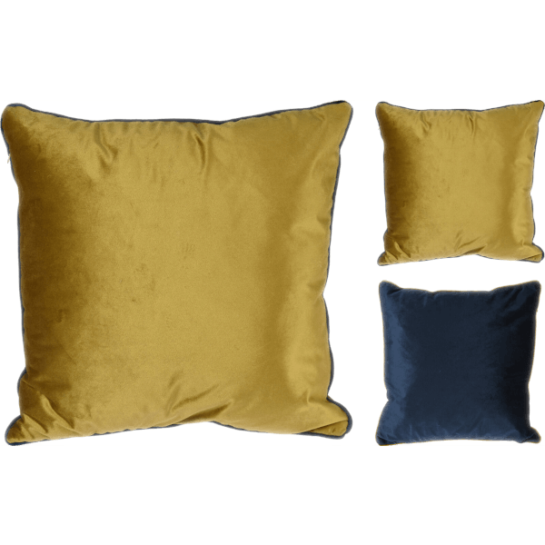 Anyaga: 100 % POLYESTER, mérete: 45X45CM, 350 GRAM a töltelék., 2 féle modell: kék színű okker dekorral, okker színű kék dekorral.