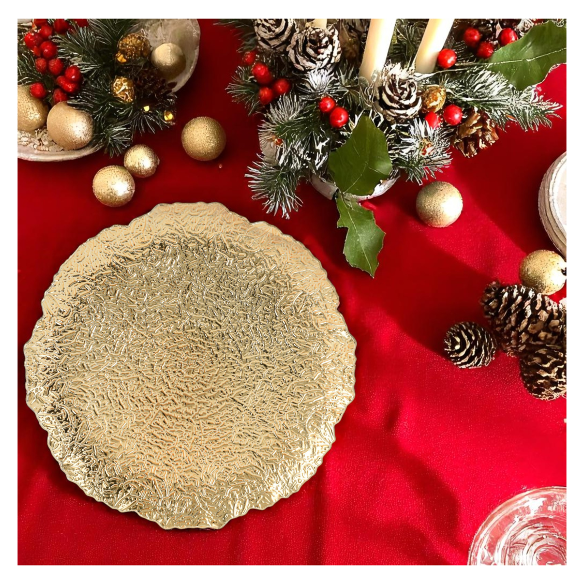 Emeld az ünnepi asztal megjelenését ezzel az arany színű dísztányérral! A 33×33×1,5 cm méretű, polipropilénből készült tányér dekoratív elemként szolgál a teríték alatt, megadva az asztali hangulat alaphangját. Könnyű, mégis stabil kialakítása révén praktikus választás karácsonyi, szilveszteri vagy egyéb alkalmi étkezésekhez.