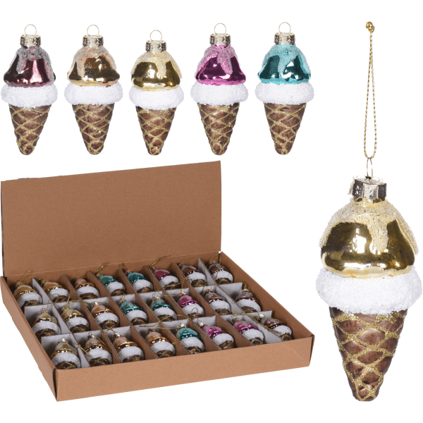 Fagylalt dísz, üveg, 4x8,5cm - Karácsonyi dekoráció - Karácsony