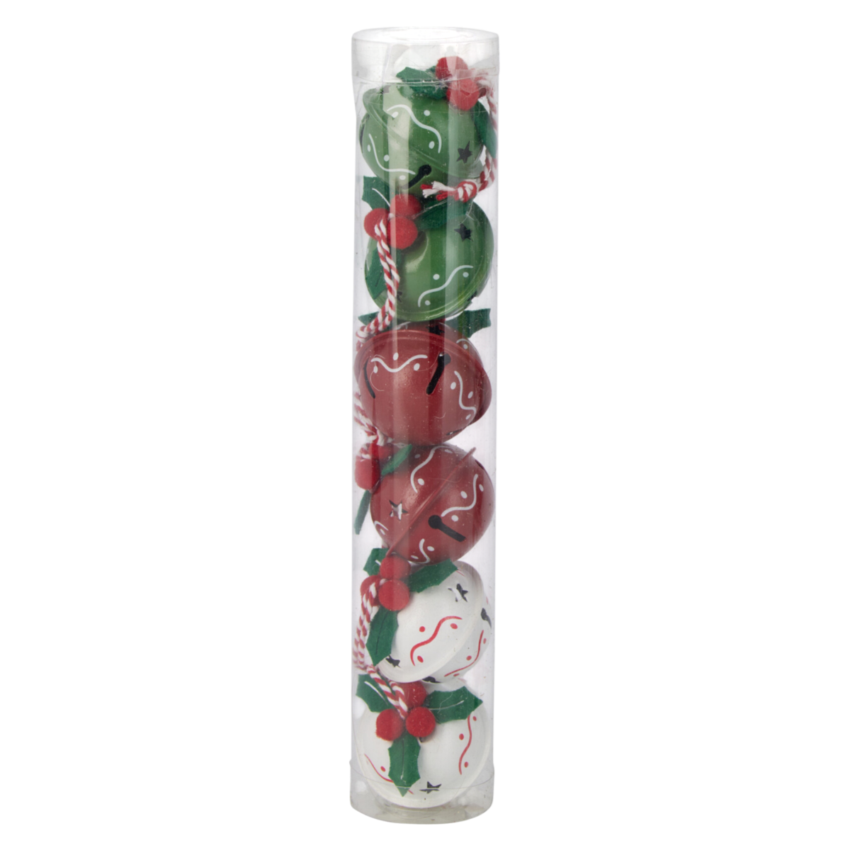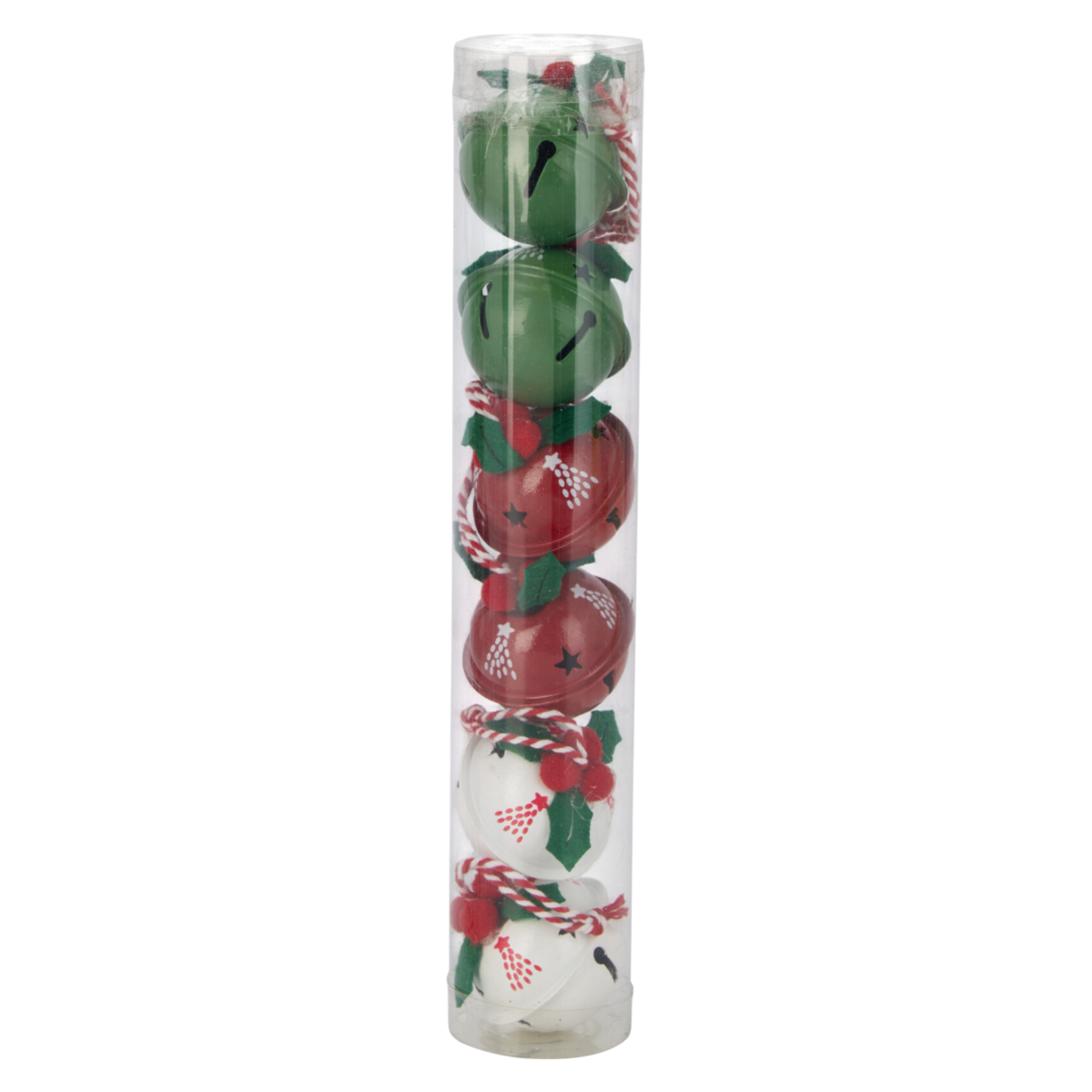 Hangold az otthonod az ünnepekre ezzel a hagyományos stílusú, fém harangokból álló díszszettel! A 6 darabos készlet minden darabja 4×4×4 cm méretű, így ideális méretű dekorációs elem lehet karácsonyfára, koszorúra vagy ajándékcsomagra kötve. A harangok különböző ünnepi motívumokkal vannak díszítve.