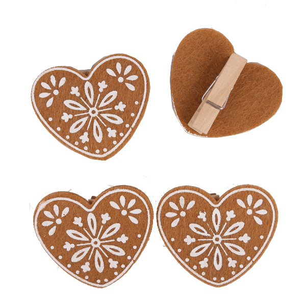 Filc mézeskalács szív 4db-os csipesszel - Karácsonyi dekoráció