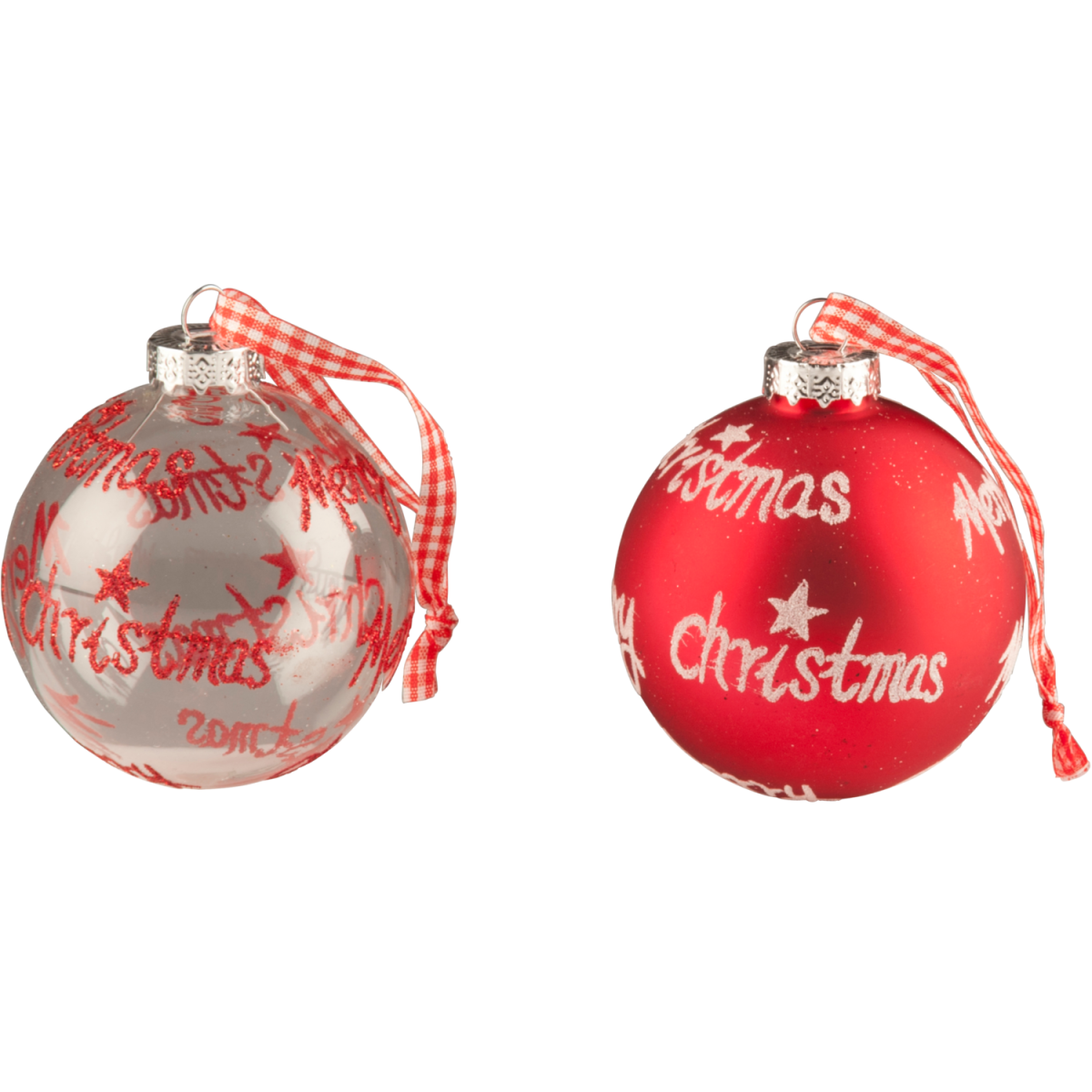Christmas feliratú karácsonyi üveggömb függődísz. 2 féle típus: átlátszó alapon piros írással vagy piros alapon fehér írással. Méret: 6 cm