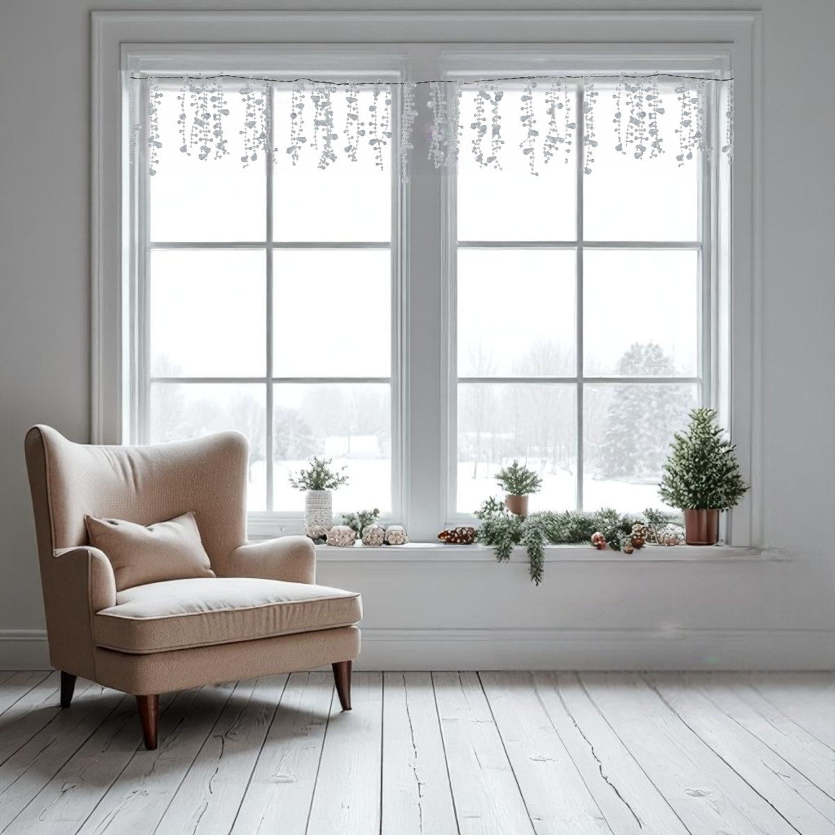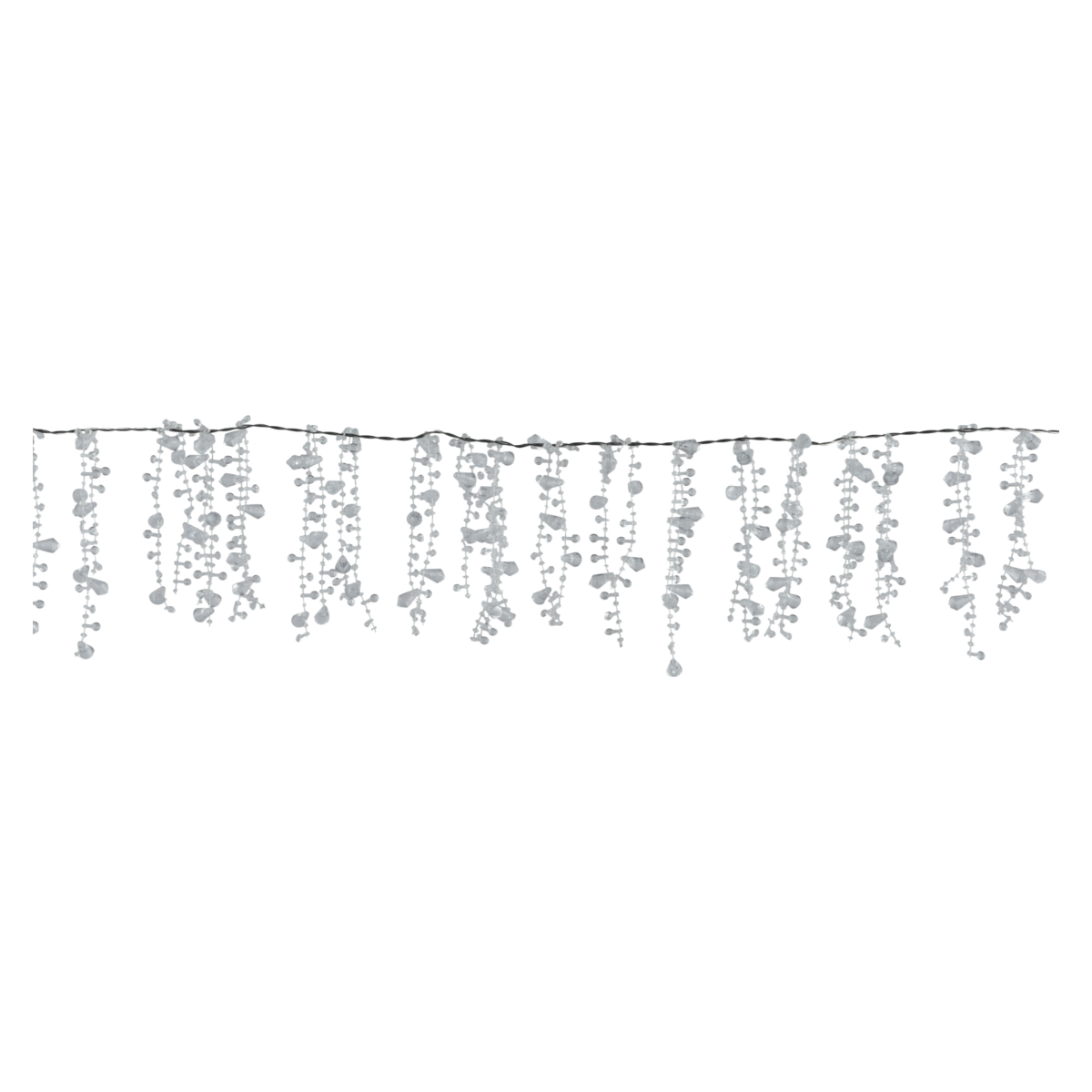 Ez az átlátszó, 180 cm hosszú girland látványos és sokoldalúan felhasználható díszítőelem, amely jégkristályos megjelenésével különleges fényhatásokat kelt. Tökéletes választás ünnepi hangulat megteremtéséhez otthonodban vagy rendezvényeken.