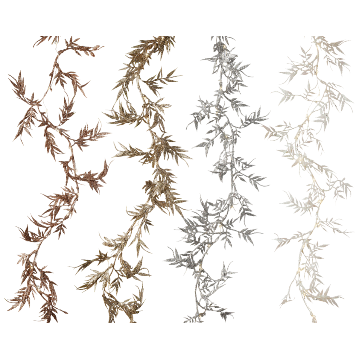 Ez a 150 cm hosszú LED-es girland csillogó leveles kialakításával stílusos és elegáns díszítőelem lehet az ünnepi időszakban. A beépített 30 darab melegfehér LED gyengéd, hangulatos fényt biztosít, miközben az IP20-as védelem beltéri használatra teszi alkalmassá. A girland négy különböző változatban érhető el, így bármely enteriőrhöz megtalálhatod a megfelelő árnyalatot.
