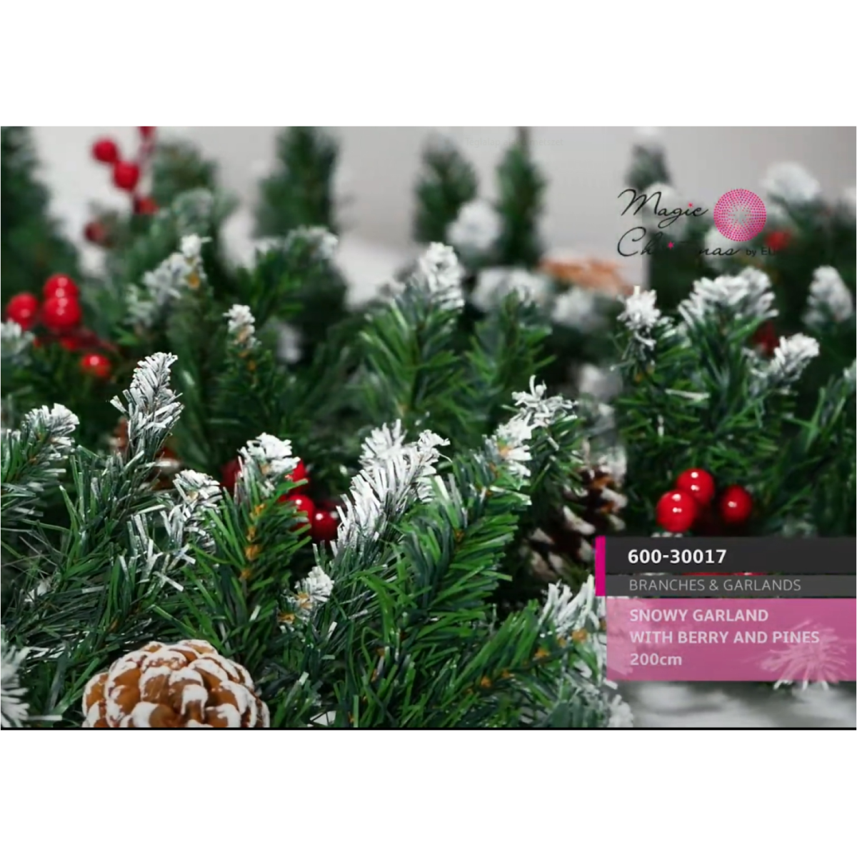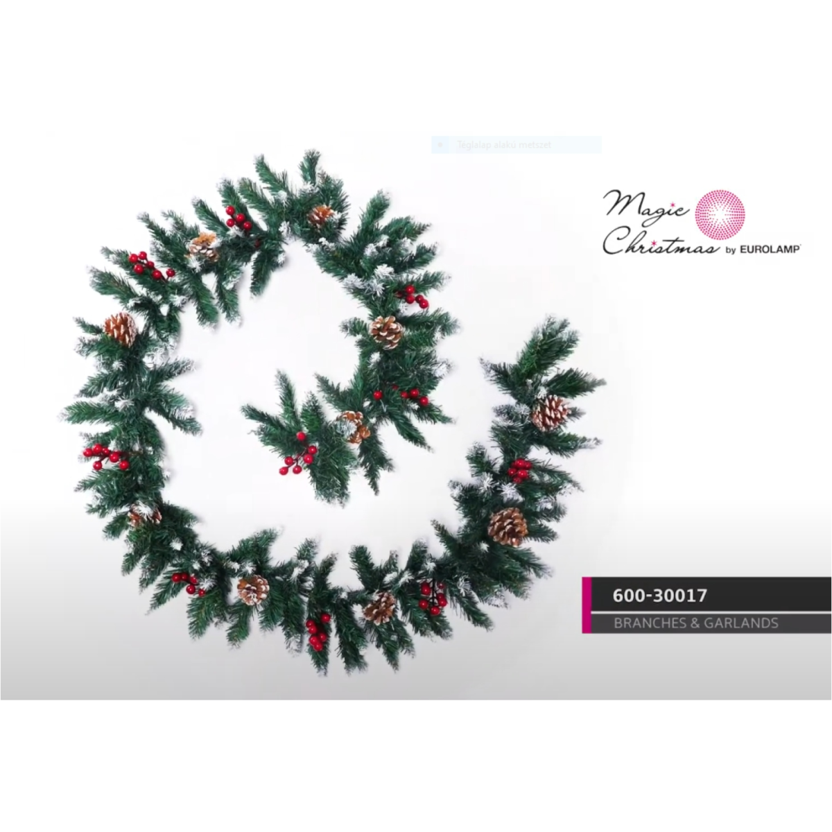 EUROLAMP GIRLAND HAVAS, PIROS BOGYÓKKAL ÉS TOBOZOKKAL 200CM