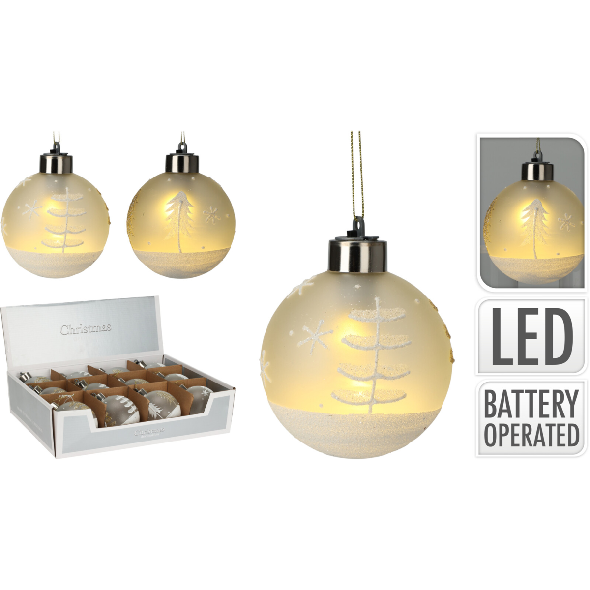 Üveg, ledes gömb dísz. 3X LR44 elemmel működik, melyet a termék tartalmaz. Kétféle modell (széles fenyő / keskeny fenyő). Online rendelés esetén kérjük, szíveskedjen feltüntetni az igényelt modellt a rendelés véglegesítése előtt a megjegyzés rovatban! Továbbá kérjük, szíveskedjen előzetesen érdeklődni az igényelt modell rendelkezésre állásáról, mivel a készlet áruházanként eltérő.
