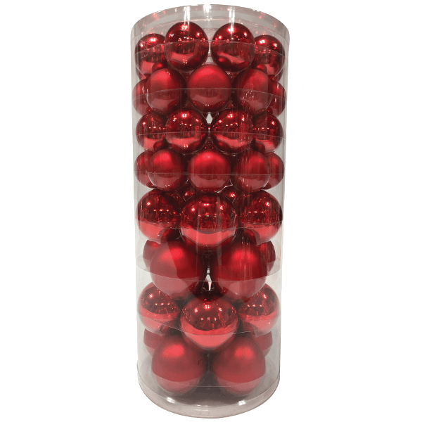56 db-os üveggömb dísz szett piros színben.
