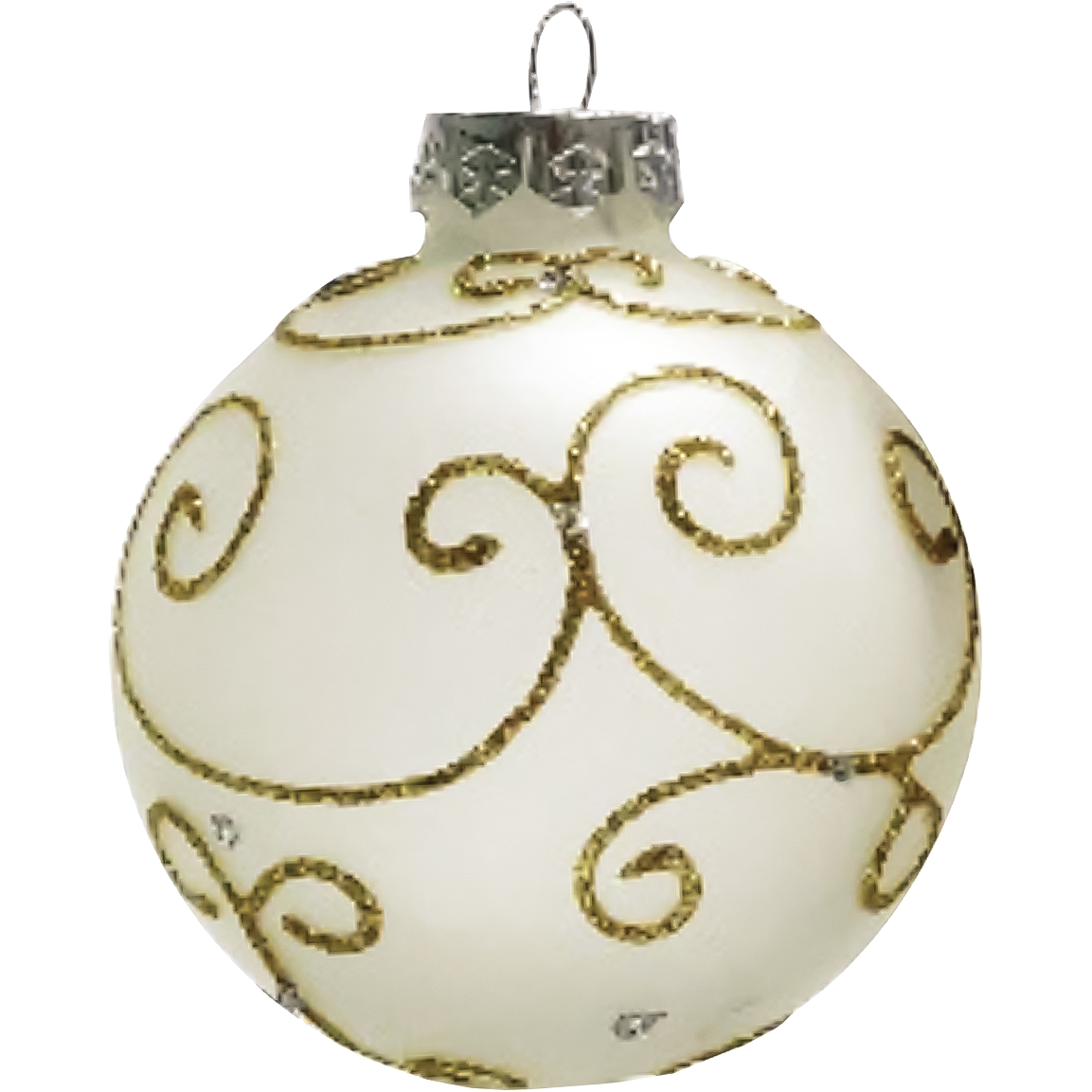Arany színű, matt, festett mintás üveg gömb 8 cm-es méretben.