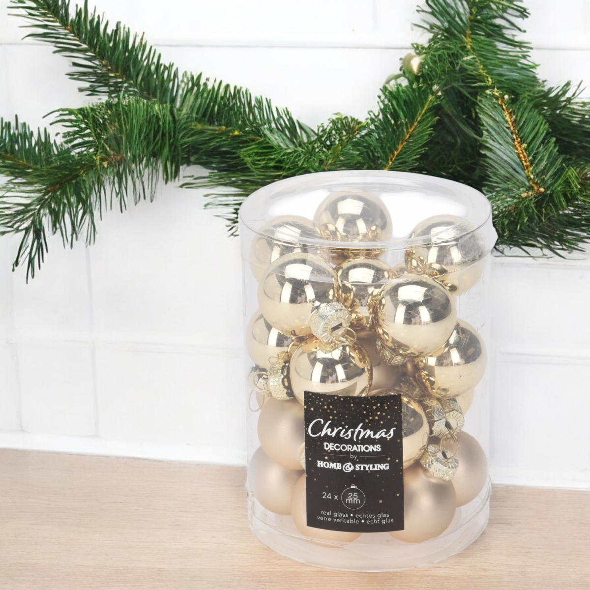 GÖMB SZETT ÜVEG ARANY 25MM 24DB: 12 FÉNYES, 12 MATT