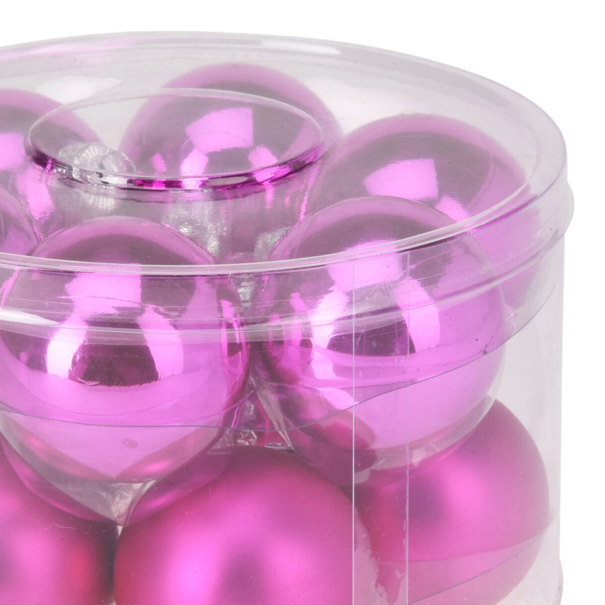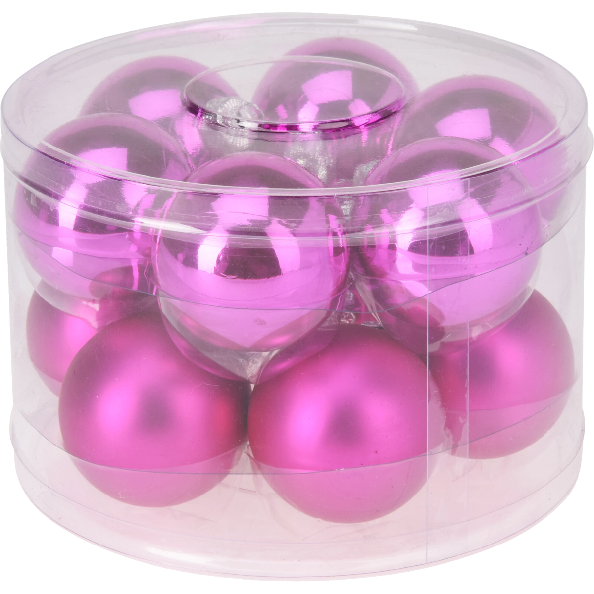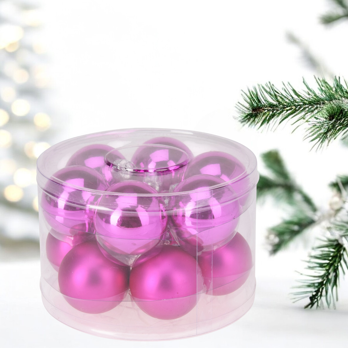 Ez a 12 db-os, üvegből készült díszgömb készlet tökéletes választás az ünnepi dekorációhoz. A készlet tartalmaz 6 fényes és 6 matt felületű gömböt, melyek mindegyike 50 mm átmérőjű, így variálhatja a fények és textúrák játékát. Az fukszia színű gömbök eleganciát és melegséget visznek otthona díszítésébe, ideálisak a karácsonyfa vagy egyéb ünnepi dekorációk kiegészítésére. A különböző felületek kombinációja lehetővé teszi, hogy egyedi és figyelemfelkeltő látványt hozzon létre.