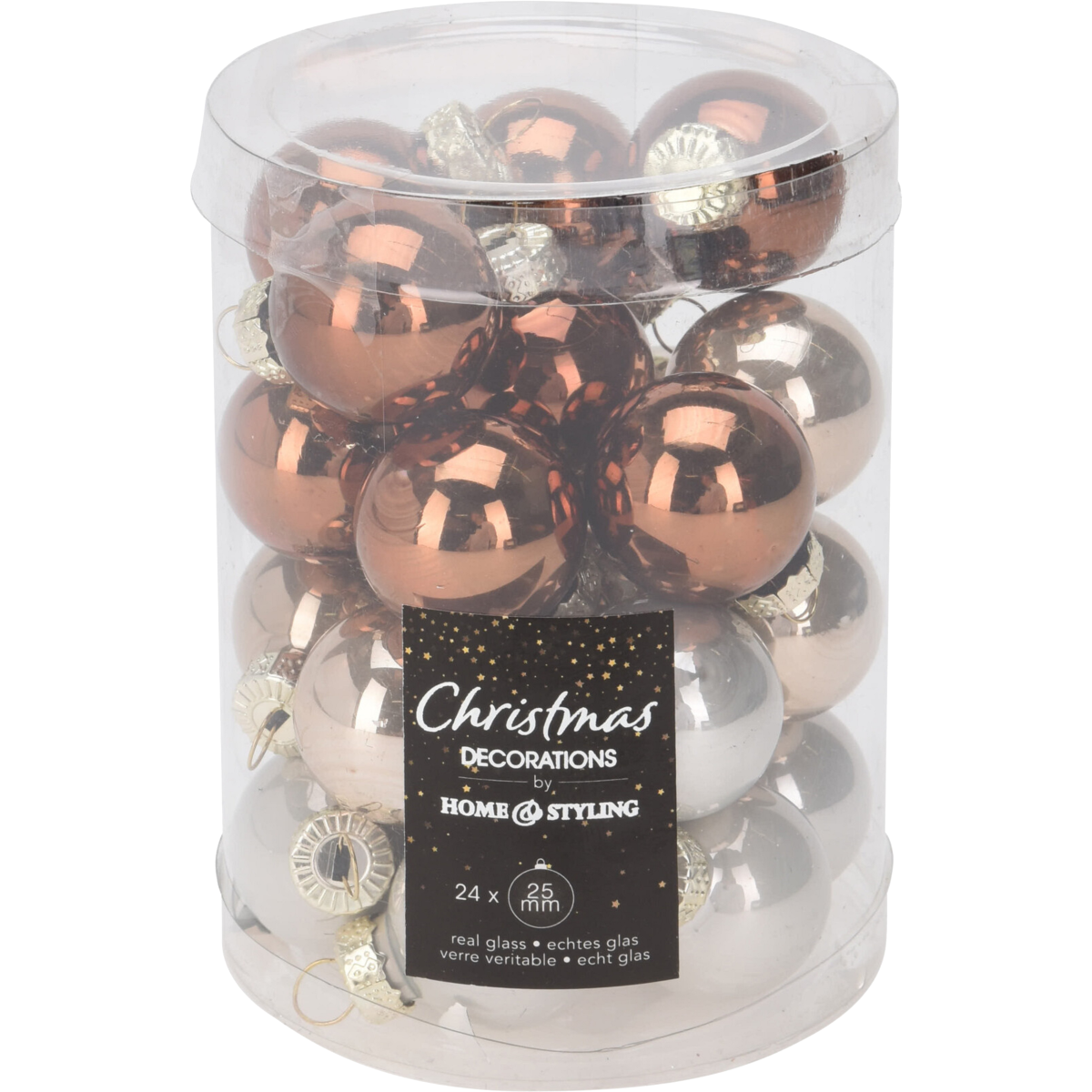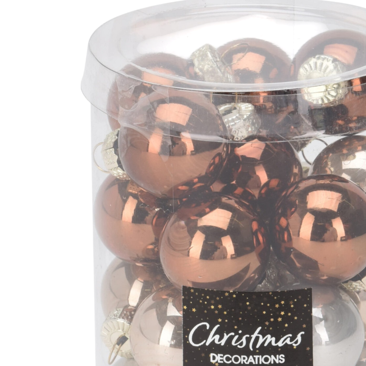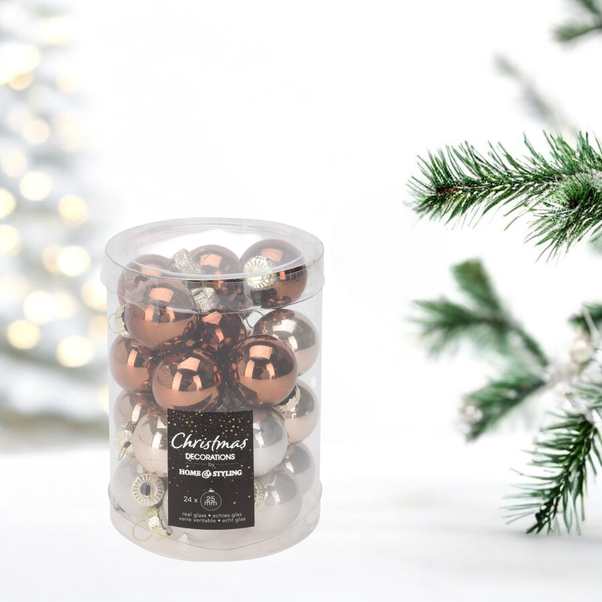 GÖMB SZETT ÜVEG KÁVÉ 25MM 24DB: 12 FÉNYES, 12 MATT