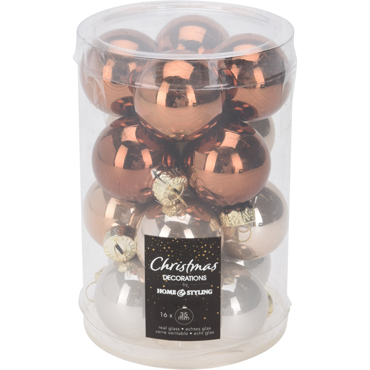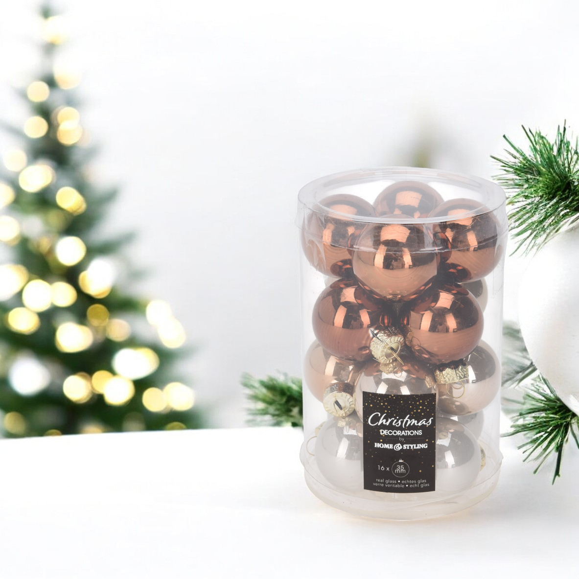 Ez a 16 darabos díszgömb készlet, amelynek anyaga üveg, tökéletes választás az ünnepi dekorációhoz. A készlet tartalmaz 8 fényes és 8 matt felületű gömböt, mindegyik 35 mm átmérőjű, így variálhatja a fények és textúrák játékát. A kávé színű gömbök eleganciát és melegséget visznek otthona díszítésébe, ideálisak a karácsonyfa vagy egyéb ünnepi dekorációk kiegészítésére. A különböző felületek kombinációja lehetővé teszi, hogy egyedi és figyelemfelkeltő látványt hozzon létre.