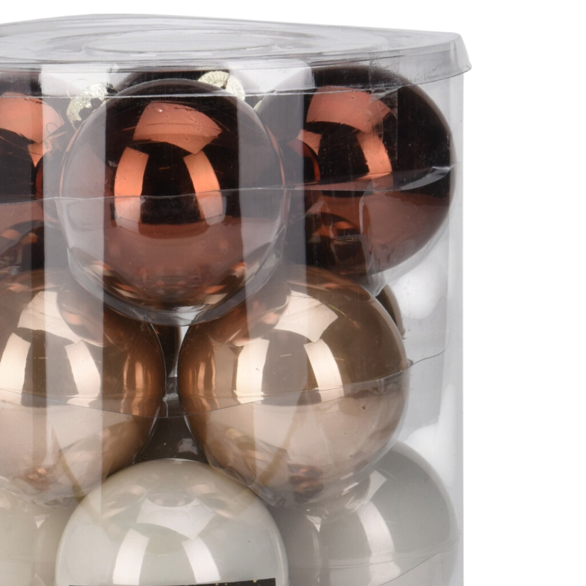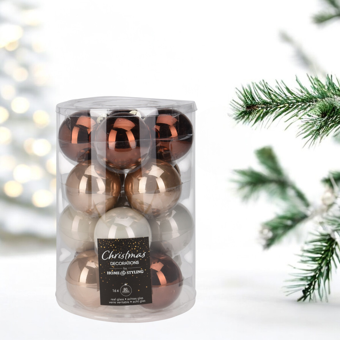 Ez a 16 darabos díszgömb készlet, amelynek anyaga üveg, tökéletes választás az ünnepi dekorációhoz. A készlet tartalmaz 8 fényes és 8 matt felületű gömböt, mindegyik 80 mm átmérőjű, így variálhatja a fények és textúrák játékát. A kávé színű gömbök eleganciát és melegséget visznek otthona díszítésébe, ideálisak a karácsonyfa vagy egyéb ünnepi dekorációk kiegészítésére. A különböző felületek kombinációja lehetővé teszi, hogy egyedi és figyelemfelkeltő látványt hozzon létre.