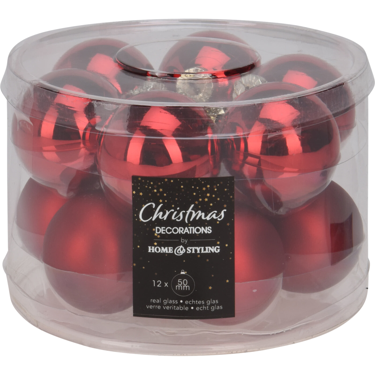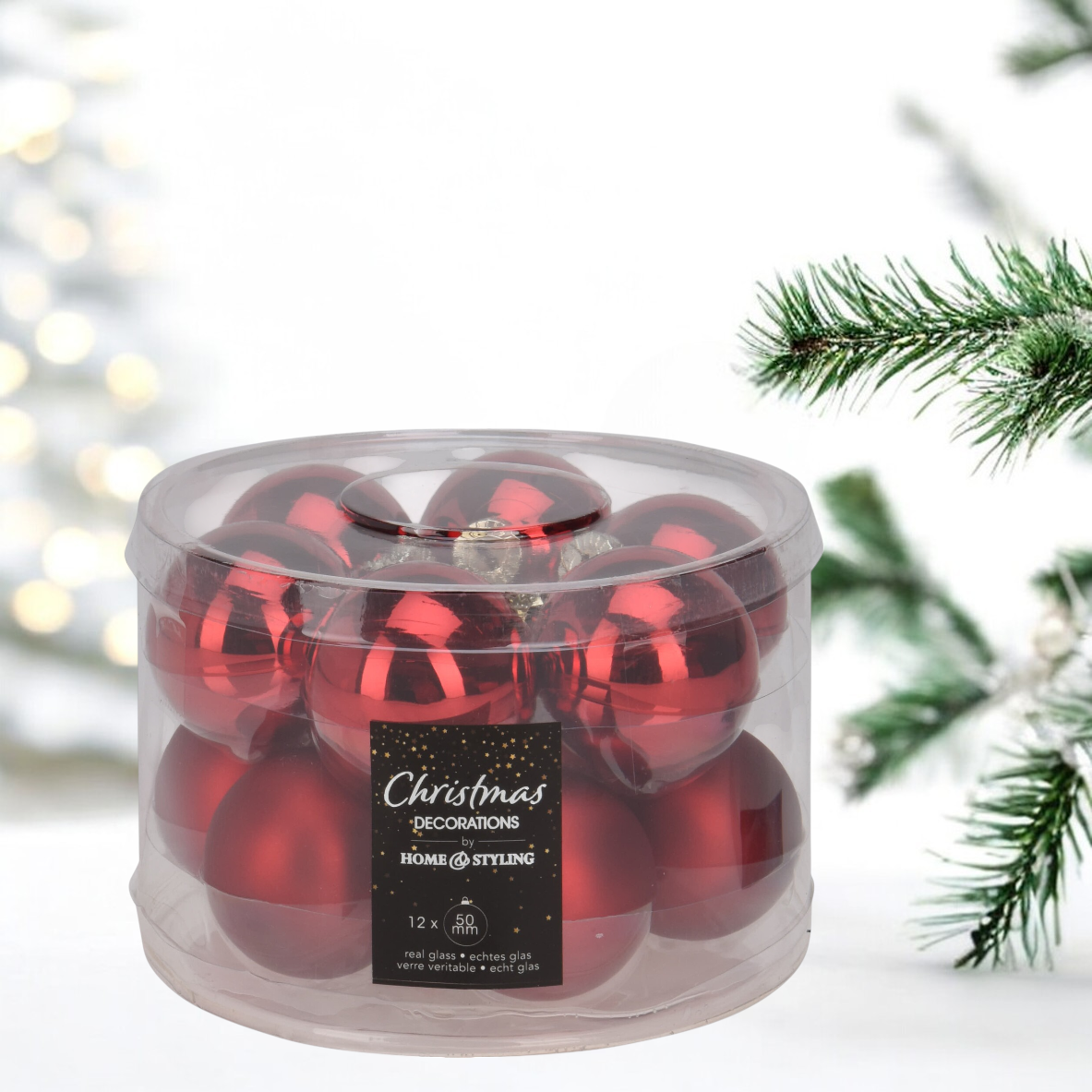 Ez a 12 darabos díszgömb készlet, amelynek anyaga üveg, tökéletes választás az ünnepi dekorációhoz. A készlet tartalmaz 6 fényes és 6 matt felületű gömböt, mindegyik 50 mm átmérőjű, így variálhatja a fények és textúrák játékát. A piros színű gömbök eleganciát és melegséget visznek otthona díszítésébe, ideálisak a karácsonyfa vagy egyéb ünnepi dekorációk kiegészítésére. A különböző felületek kombinációja lehetővé teszi, hogy egyedi és figyelemfelkeltő látványt hozzon létre.