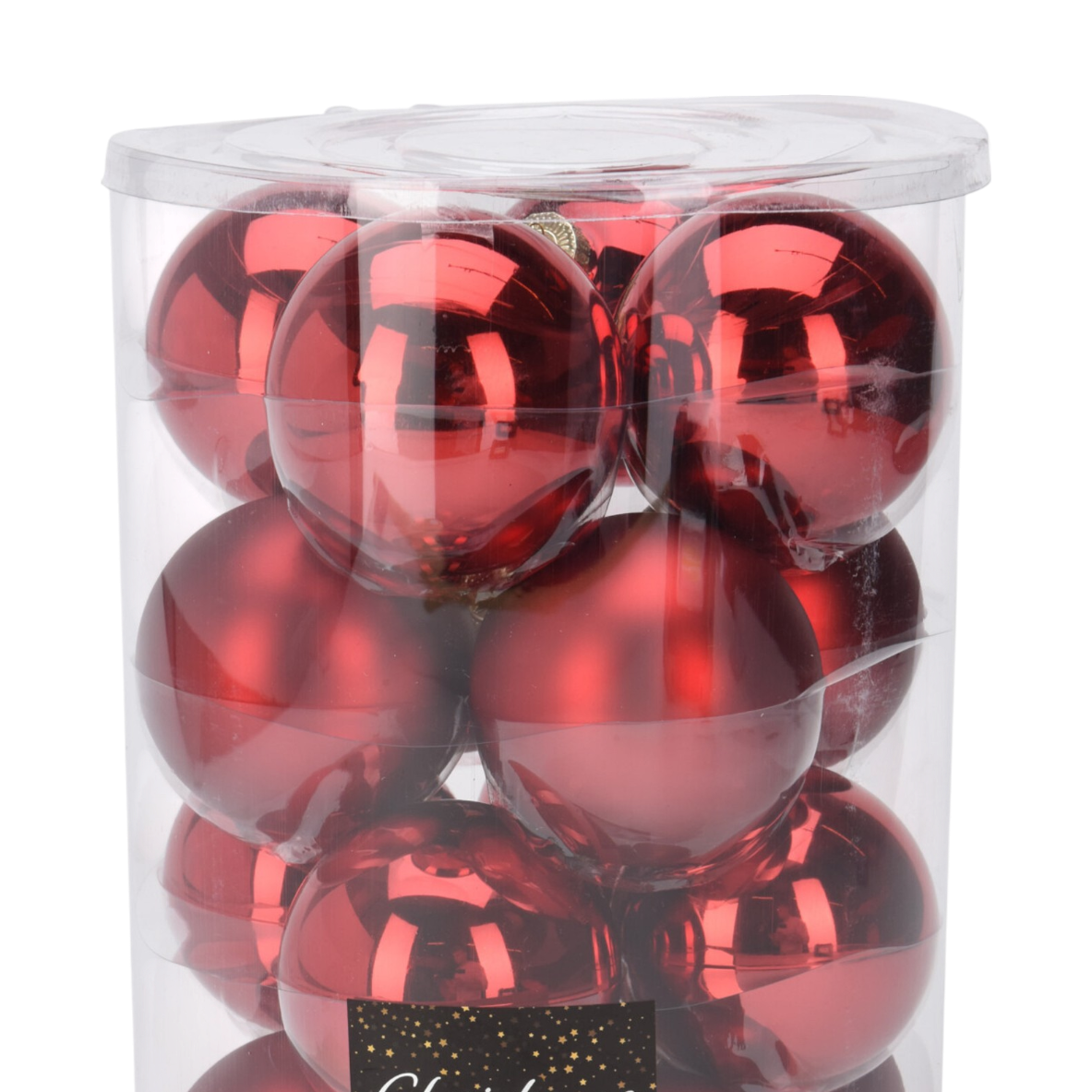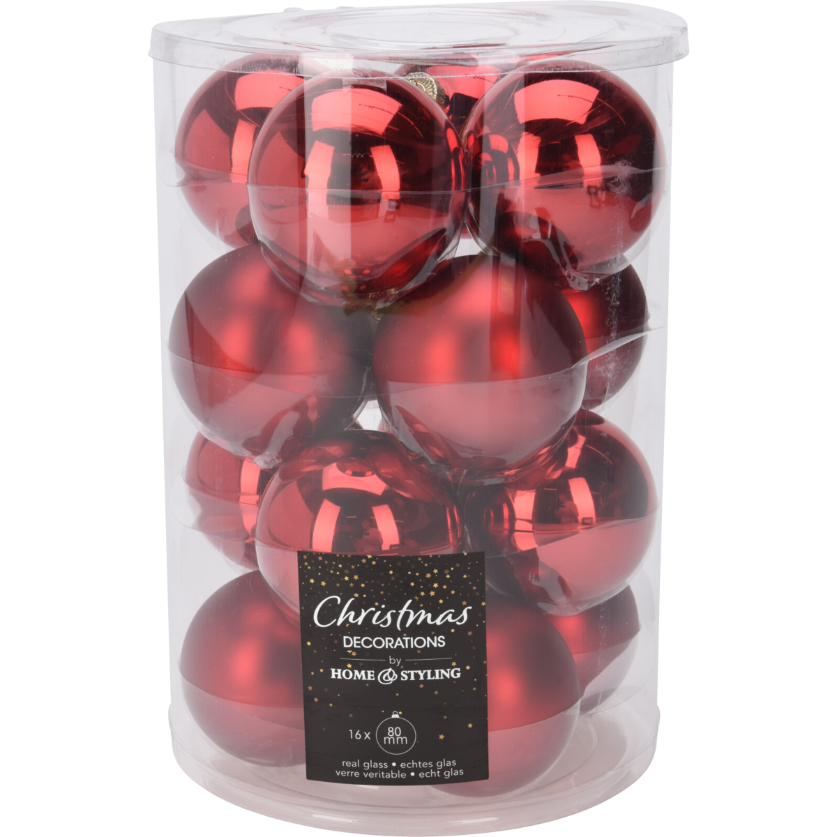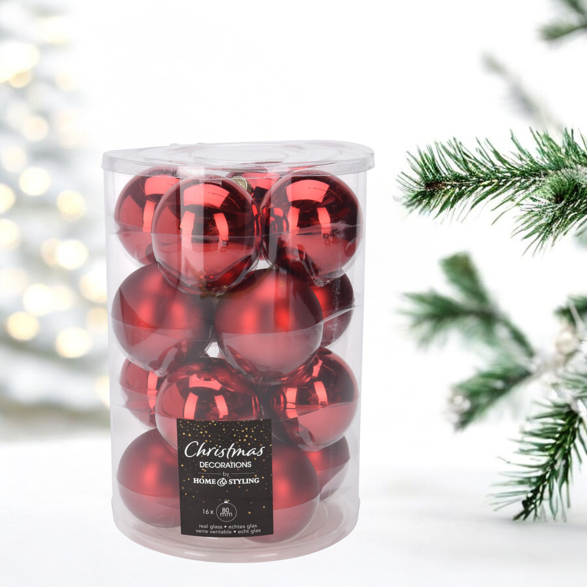 Ez a 16 darabos díszgömb készlet, amelynek anyaga üveg, tökéletes választás az ünnepi dekorációhoz. A készlet tartalmaz 8 fényes és 8 matt felületű gömböt, mindegyik 80 mm átmérőjű, így variálhatja a fények és textúrák játékát. A piros színű gömbök eleganciát és melegséget visznek otthona díszítésébe, ideálisak a karácsonyfa vagy egyéb ünnepi dekorációk kiegészítésére. A különböző felületek kombinációja lehetővé teszi, hogy egyedi és figyelemfelkeltő látványt hozzon létre.