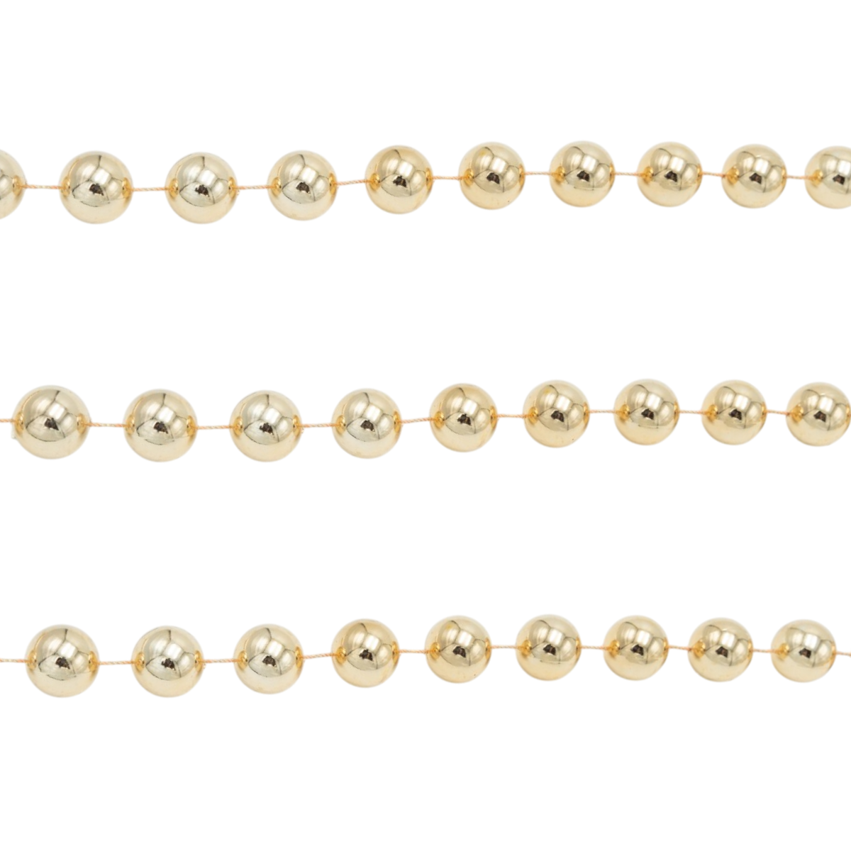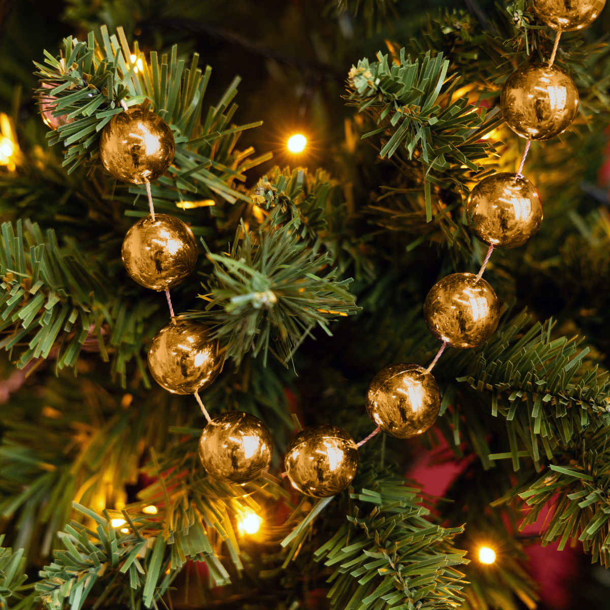 A 2,8 méter hosszú, arany színű gyöngyfüzér elegáns és sokoldalú kiegészítője a karácsonyi dekorációnak. Finoman fénylő felületével meleg, ünnepi hangulatot teremt, és könnyedén illeszthető bármilyen díszítésbe – legyen az karácsonyfa, asztali kompozíció vagy vázadísz.