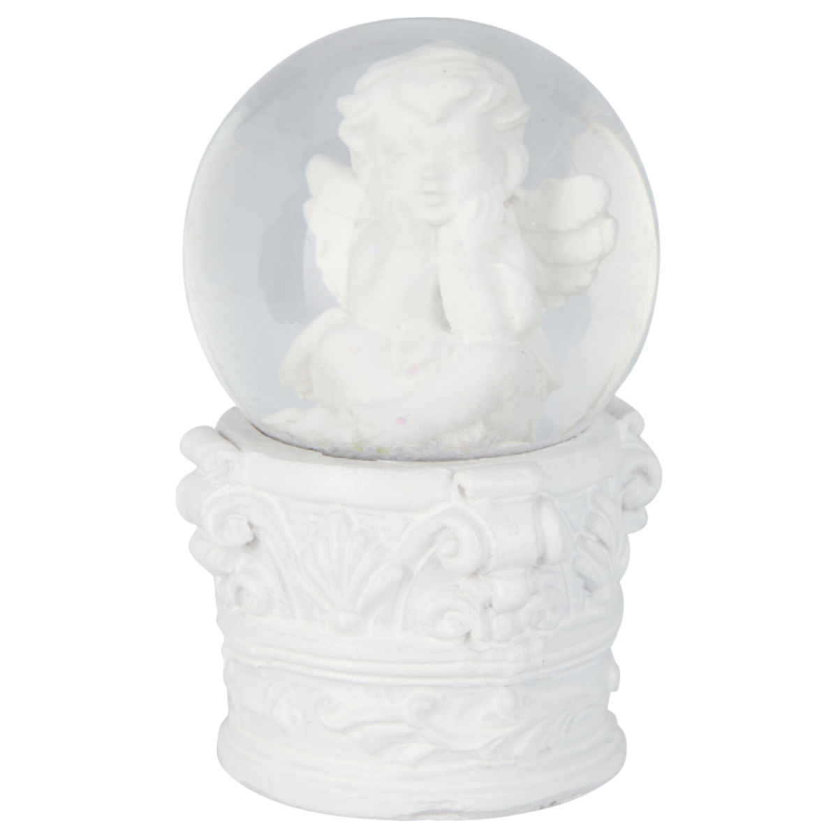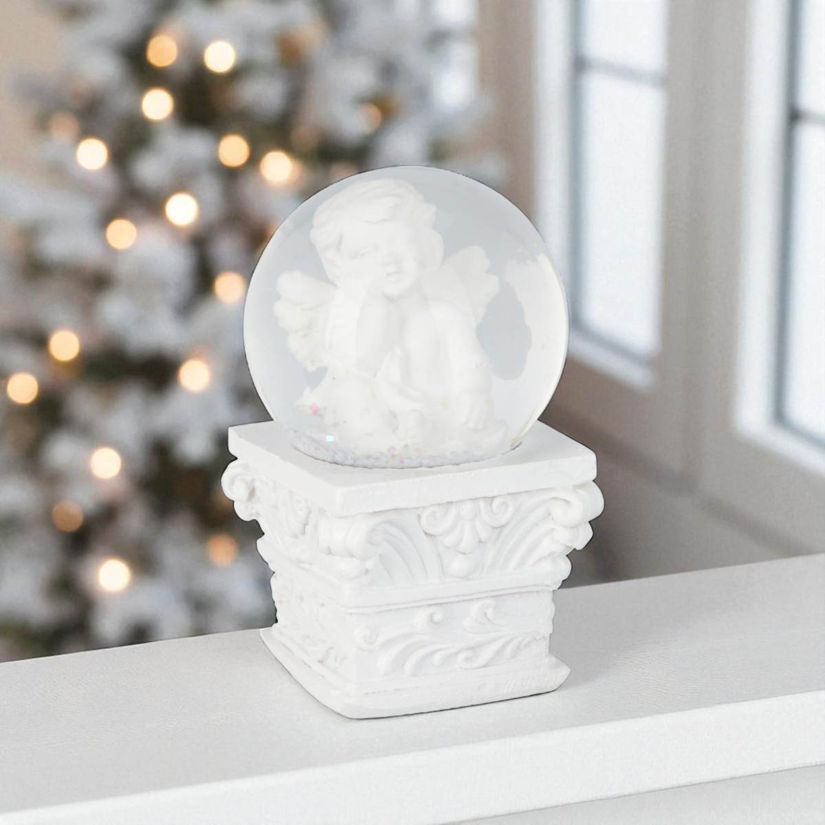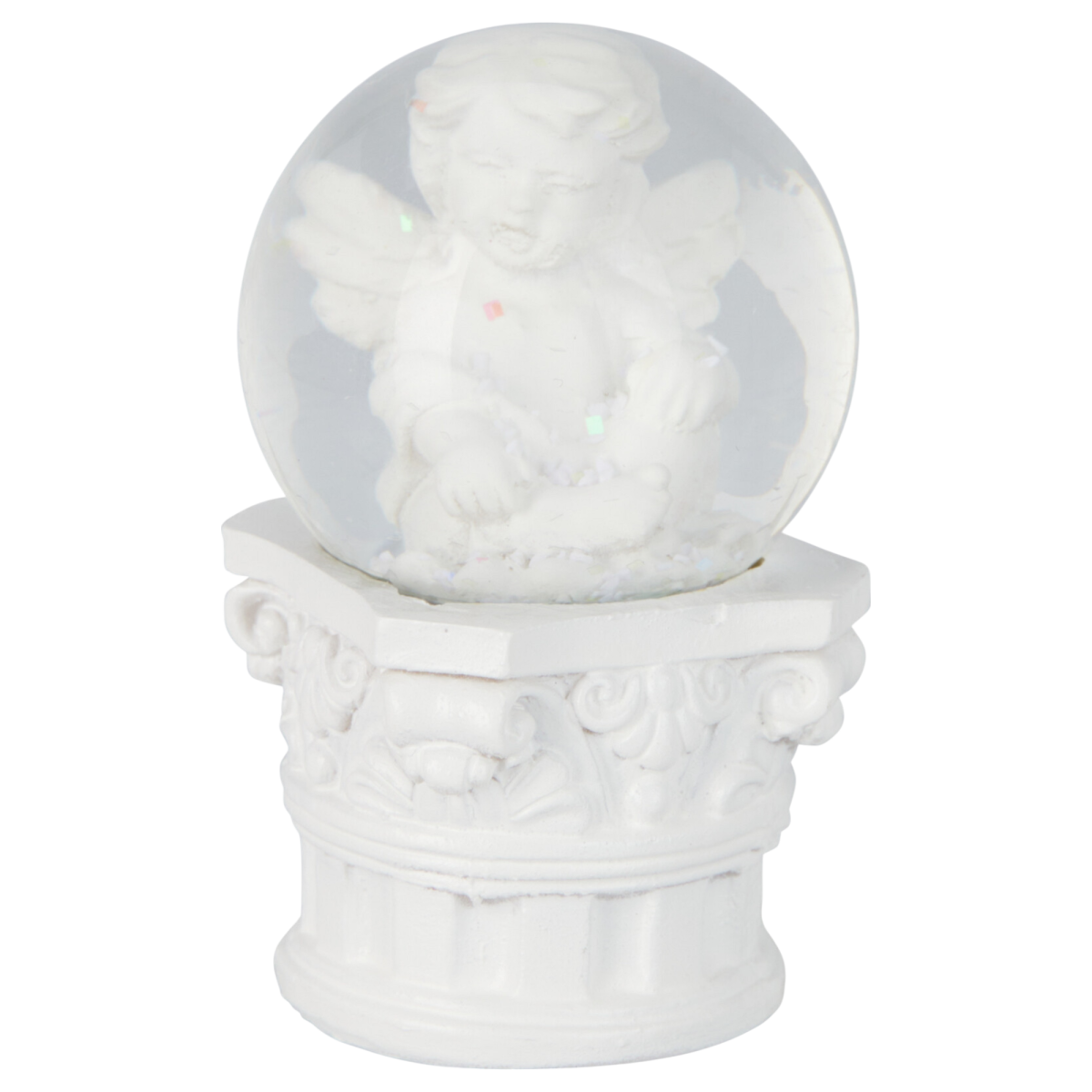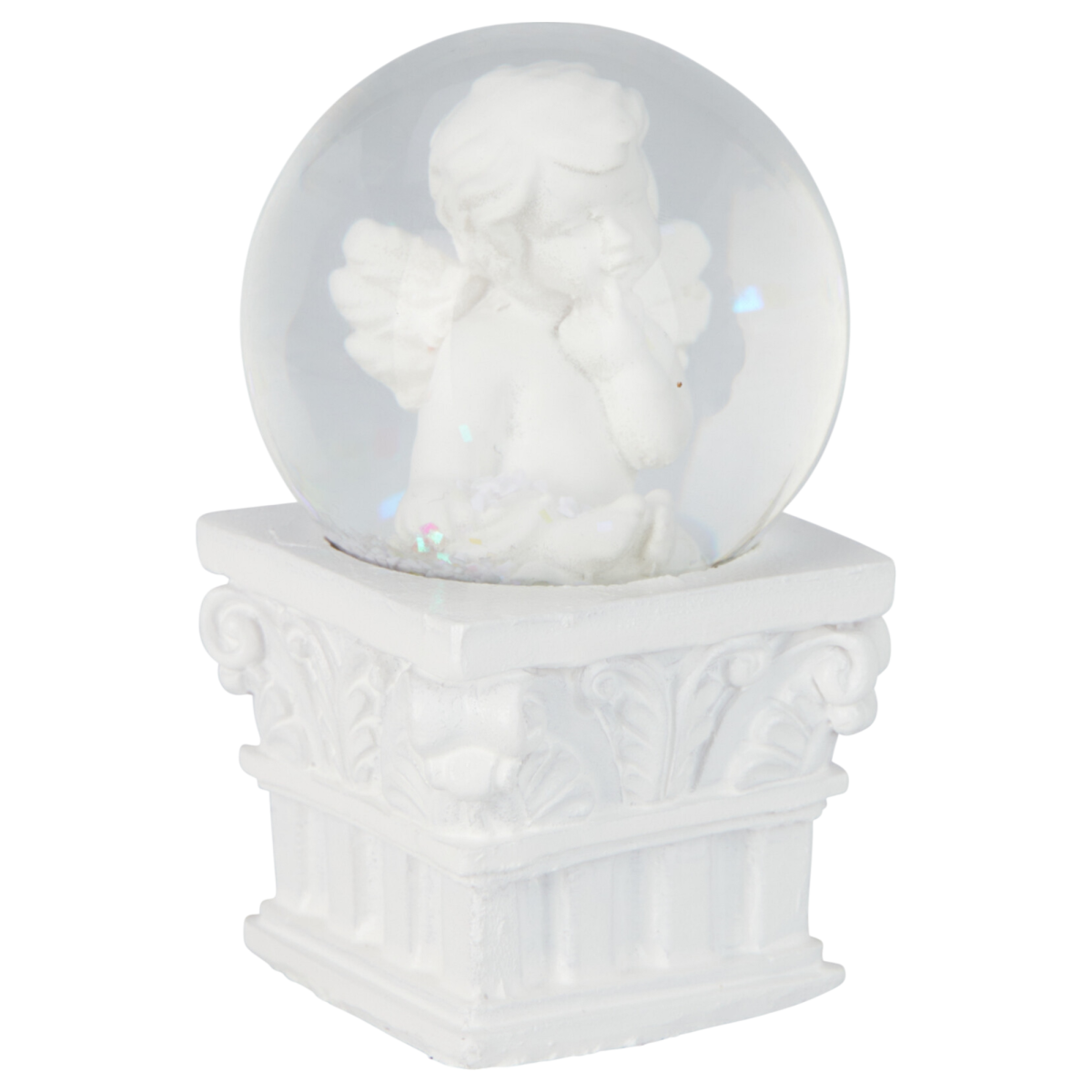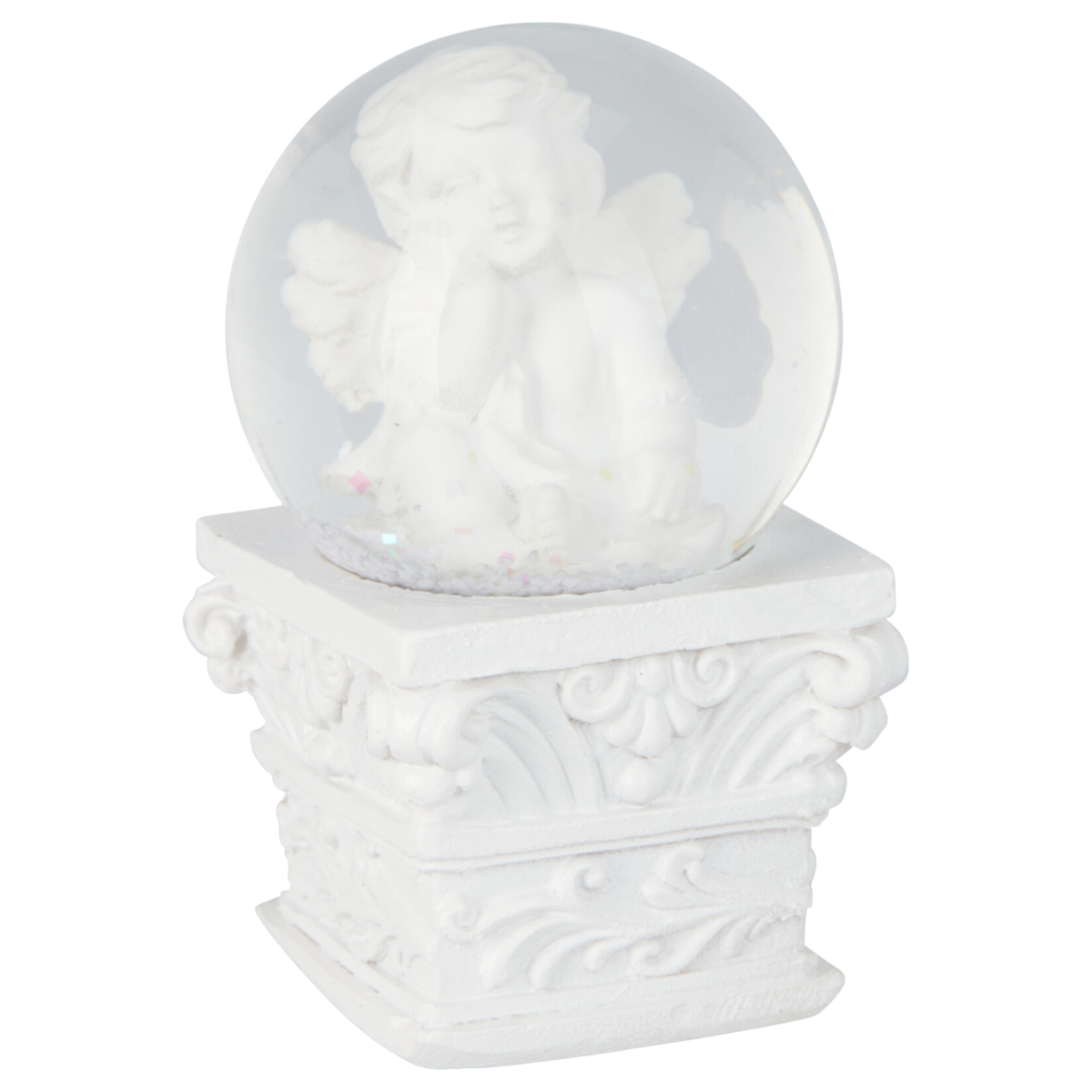 Egy bájos, klasszikus dekoráció, amely tökéletes ajándék vagy ünnepi kiegészítő lehet otthonodban. A hógömb belsejében egy fehér angyalfigura látható, a gömböt pedig gazdagon díszített oszloptalp emeli ki. A hógömb műgyantából készült, részletgazdag kialakításával és visszafogott színvilágával jól illeszkedik elegáns vagy romantikus enteriőrökbe is.