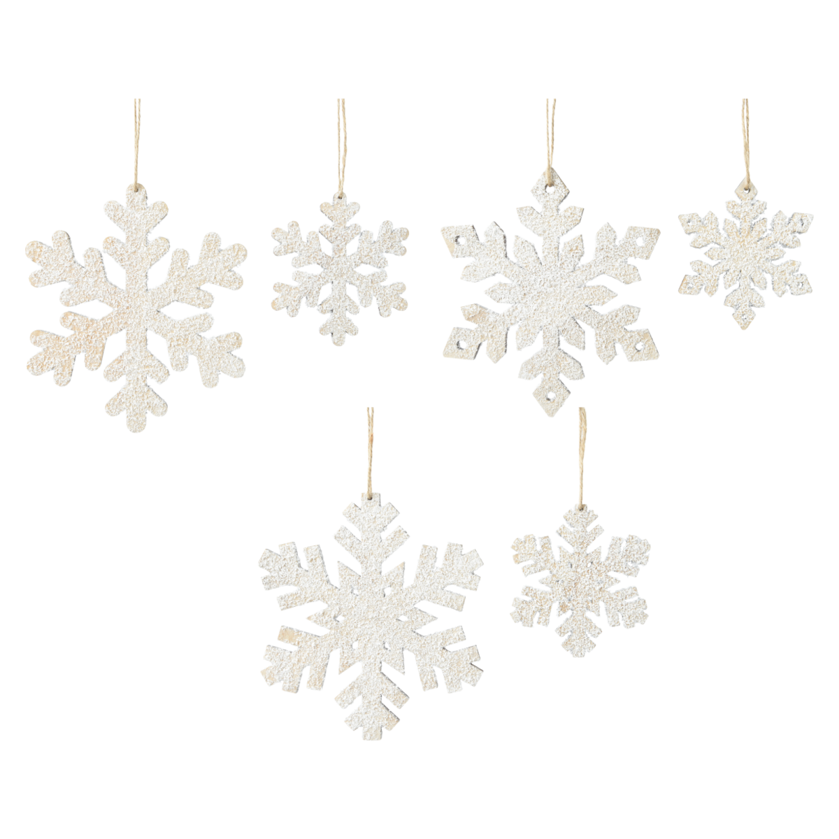 Ez a látványos, havas hatású felülettel rendelkező, furnérból készült hópihe igazi különlegesség lehet karácsonyfádon. A beltéri dísz jutából készült akasztóval van ellátva. A 6 különböző fehér hópehely visszafogott, mégis ünnepi hatást kelt. A természetes anyag és a részletgazdag kialakítás harmonikusan illeszkedik több különböző díszítési stílushoz is.