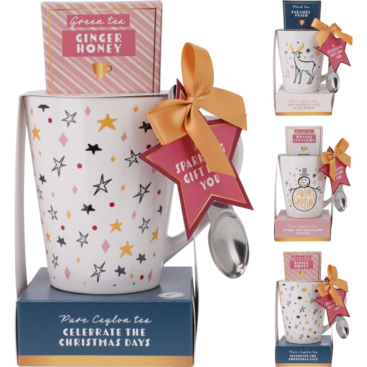 A különböző mintájú bögrékhez különböző illatos teák tartoznak 3-féle ízben: