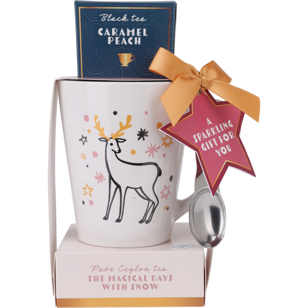 A szett egy elegáns és praktikus ajándékcsomag, amely egy darab 3 dl-es, rózsaszín-sárga színkombinációjú kerámia bögrét, egy darab 14 cm-es fém kiskanalat, valamint 2x2 gramm teafiltert tartalmaz. Ez a szett tökéletes választás lehet ajándéknak vagy saját használatra, hogy egy kis luxust csempésszen a mindennapokba.