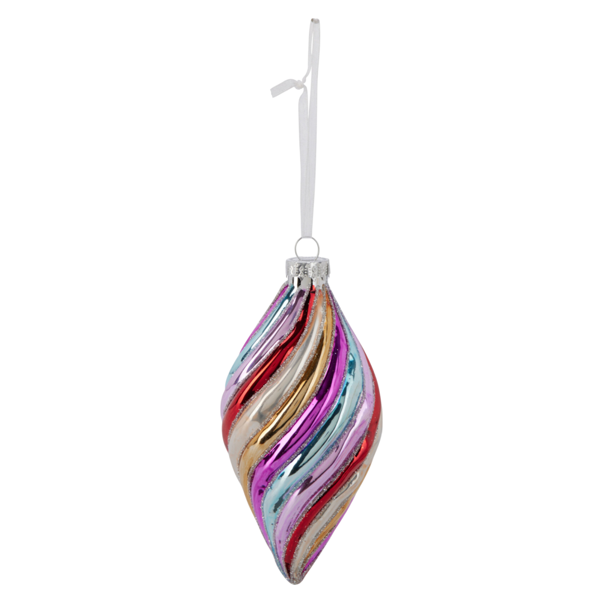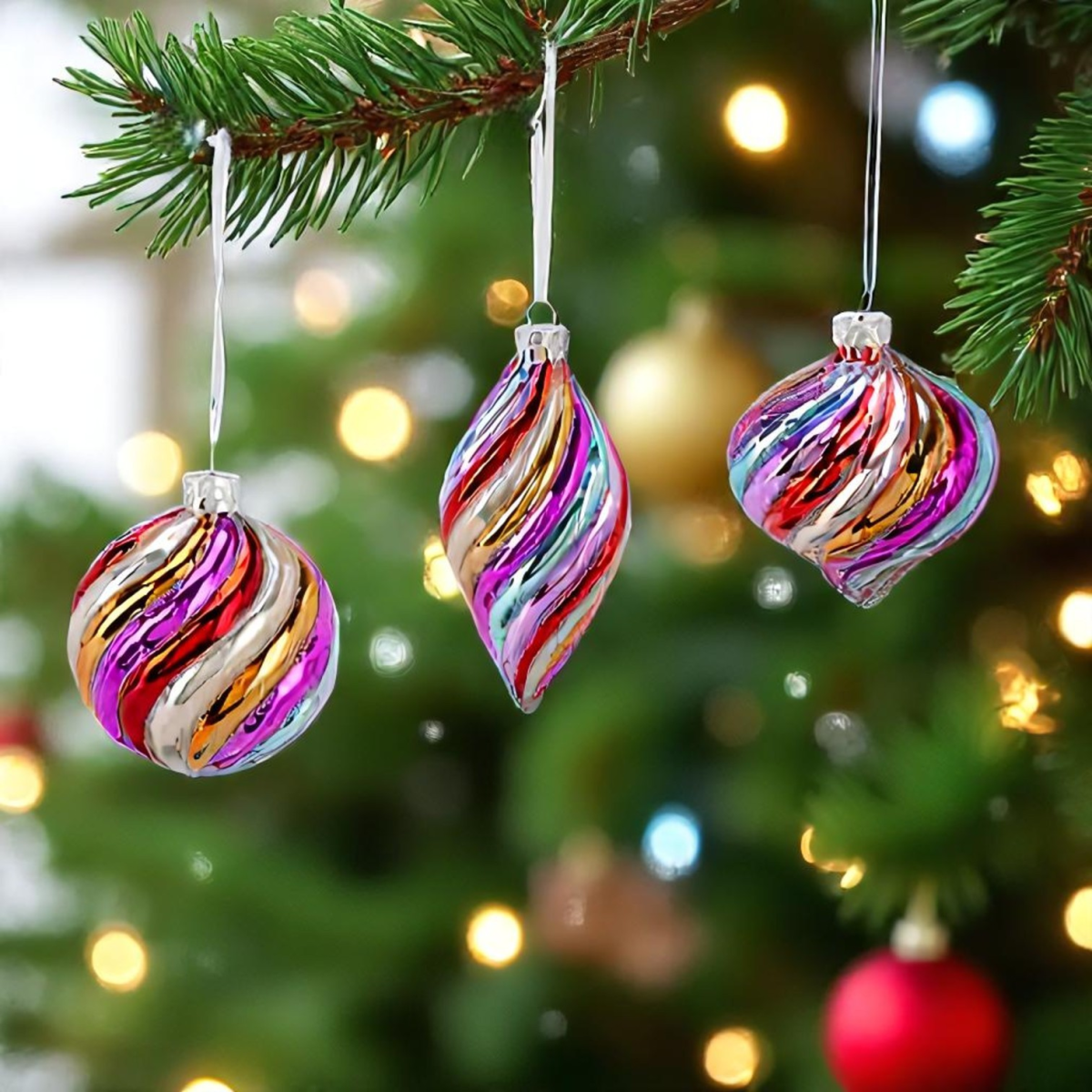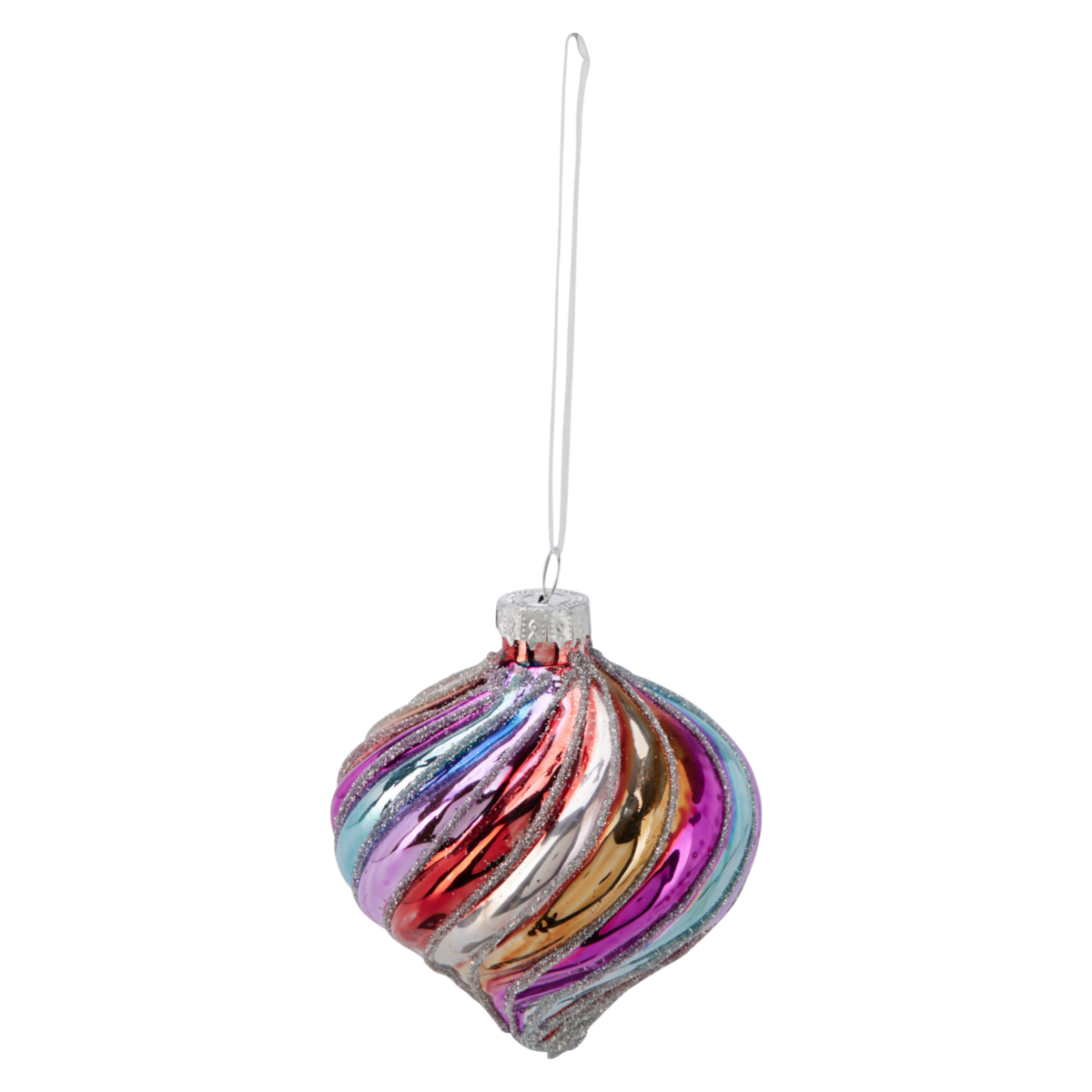 Tedd elegánssá beltéri ünnepi dekorációd ezzel a klasszikus üveg dísszel, amely háromféle formában érhető el: gömb, hagyma és hosszúkás kivitelben. Minden dísz ezüst színű kupakkal és zsinórral van ellátva. A gömb és a hagyma alakú díszek 8 cm-esek, míg a hosszúkás változat 13 cm magas.