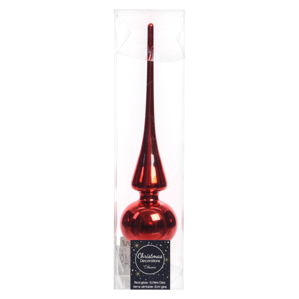 Tedd teljessé a karácsonyfád megjelenését ezzel a ragyogó, piros fényes csúcsdísszel! A 26 cm magas, elegáns kialakítású üveg dísz fényt és karaktert visz a fa legtetejére, legyen szó modern vagy hagyományos dekorációról.
