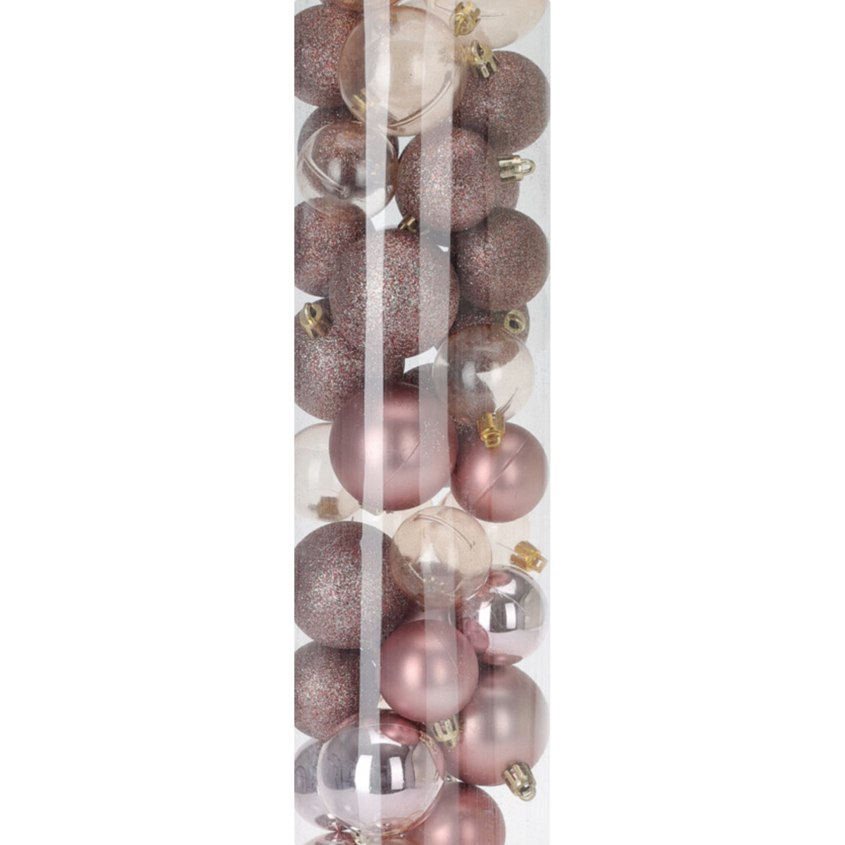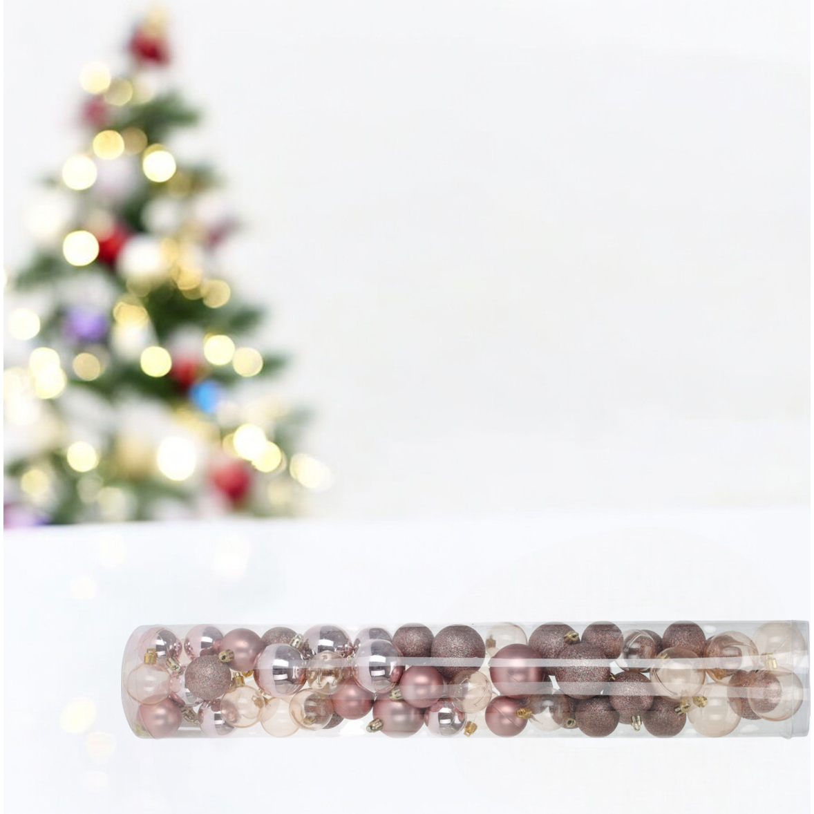 4 cm-es és 5 cm-es, pink színű, 60 darabos gömb szett. A szettben az 5 cm-es gömbökből 3 db matt, 3 db fényes, 6 db glitteres, 6 db áttetsző, a 4 cm-es gömbökből 5 db matt, 9 db fényes, 12 db glitteres, 16 db áttetsző gömb található. Ezzel a gömb szettel biztosan csodálatossá varázsolhatjuk karácsonyfánkat vagy akár adott helyiséget.