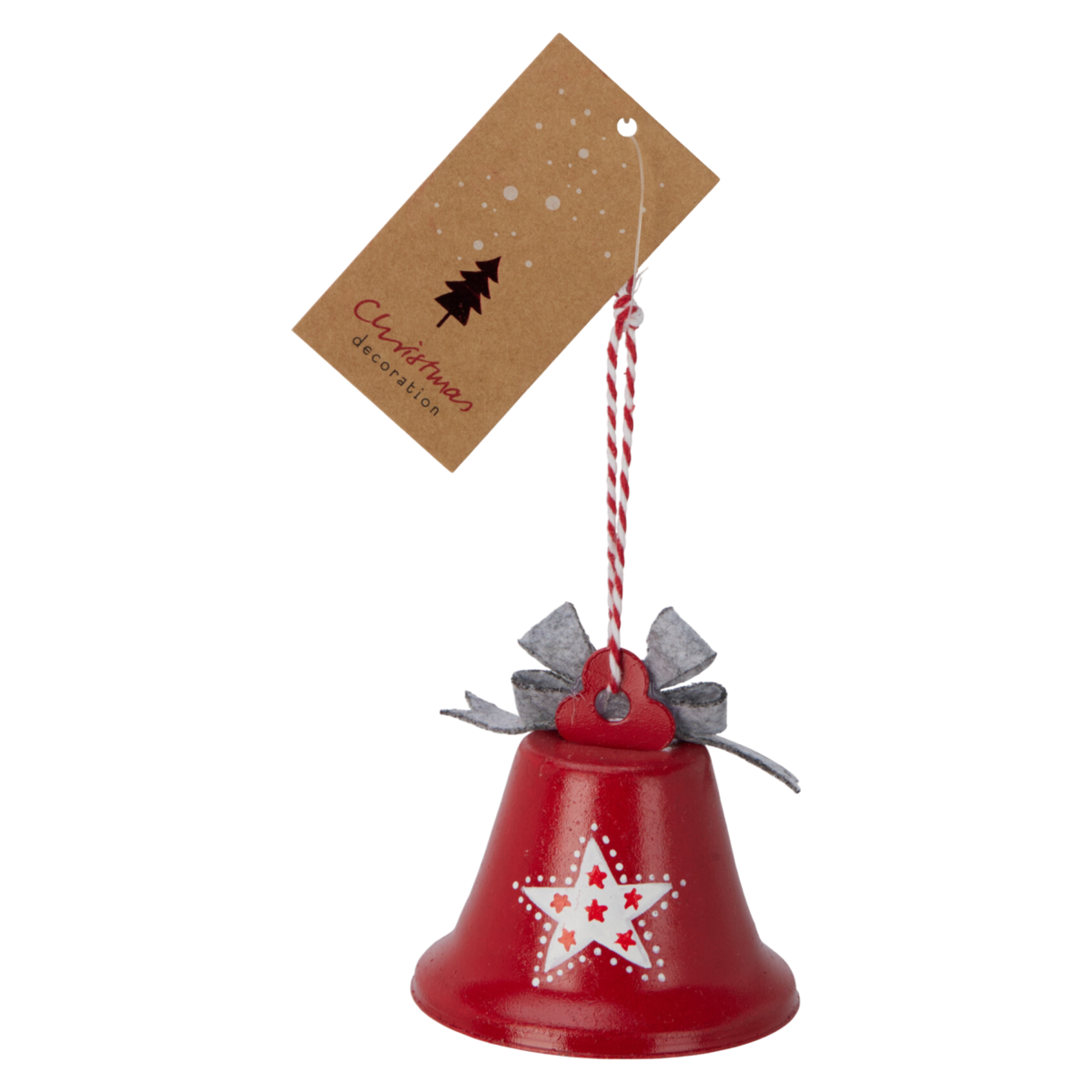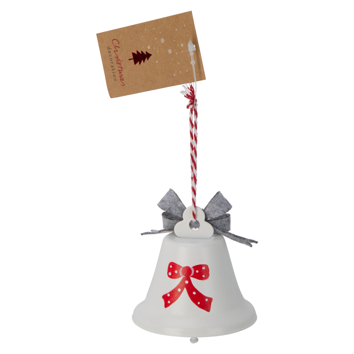 Ez a harang formájú karácsonyfadísz a hagyományos ünnepi hangulatot idézi meg stílusos kivitelben. A tetején elhelyezett dekoratív masni tovább fokozza az ünnepi megjelenést.