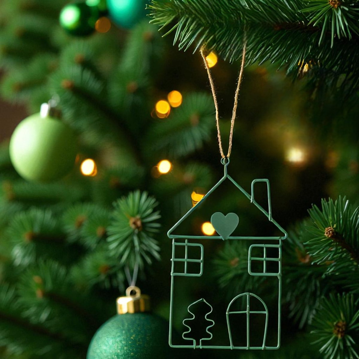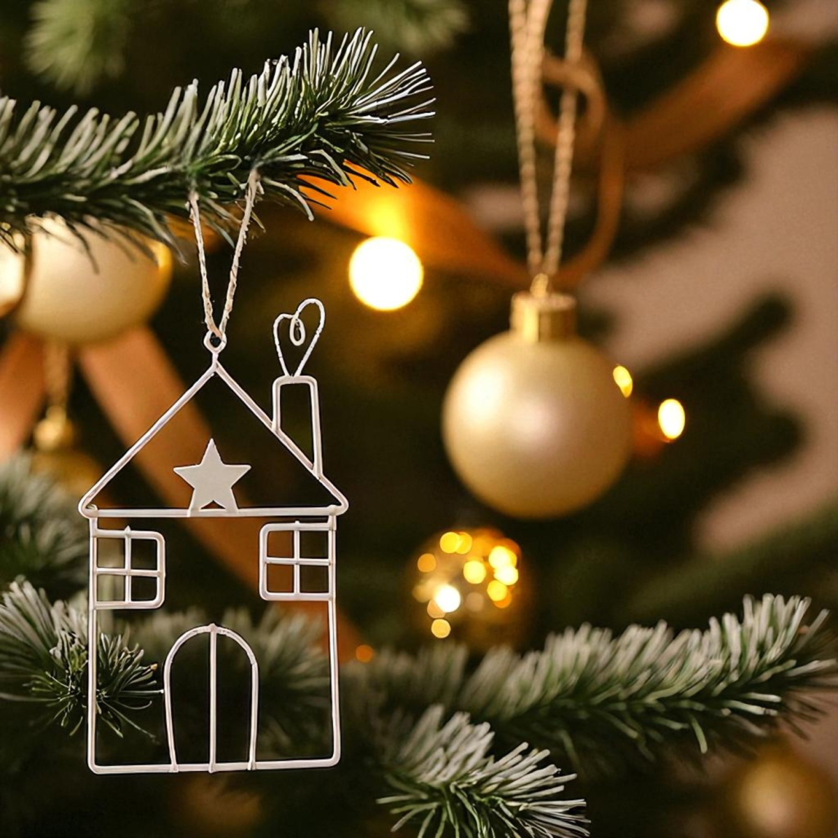 Ez a különleges formájú, fém karácsonyfadísz házikó alakban készült, amely melegséget és otthonosságot sugároz az ünnepi dekorációban. A 13,5 cm magas dísz könnyű, mégis masszív kivitelű, akasztós kialakításának köszönhetően egyszerűen elhelyezhető a karácsonyfán vagy más ünnepi dekorációs elemeken.