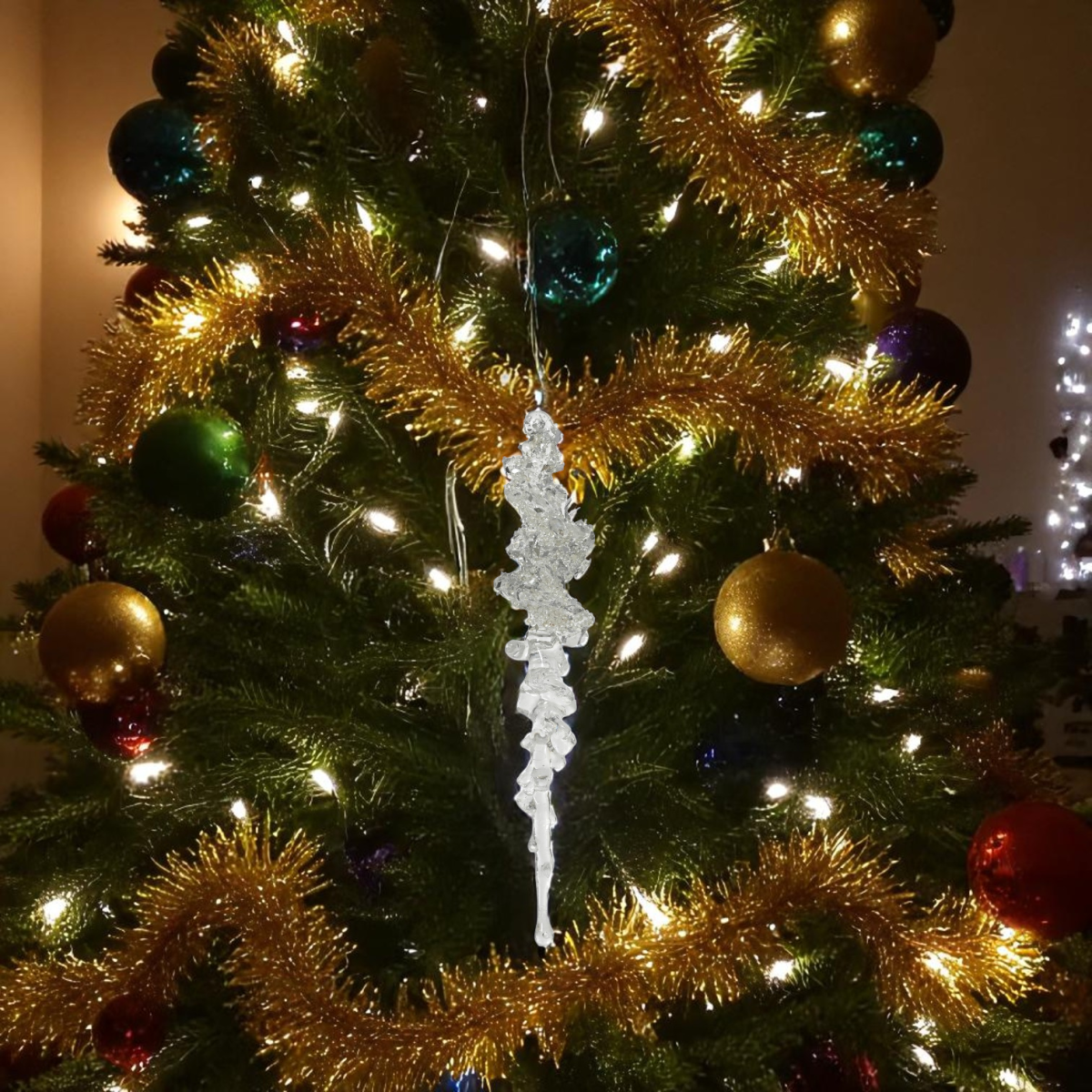 Hozd el az ünnepi fagyos hangulatot otthonodba ezzel az elegáns, jégcsap formájú karácsonyfadísszel! A 25,3 cm hosszú, átlátszó műanyagból készült dísz könnyed és tartós, így biztonságosan elhelyezhető a fa különböző pontjain anélkül, hogy lehúzná az ágakat.