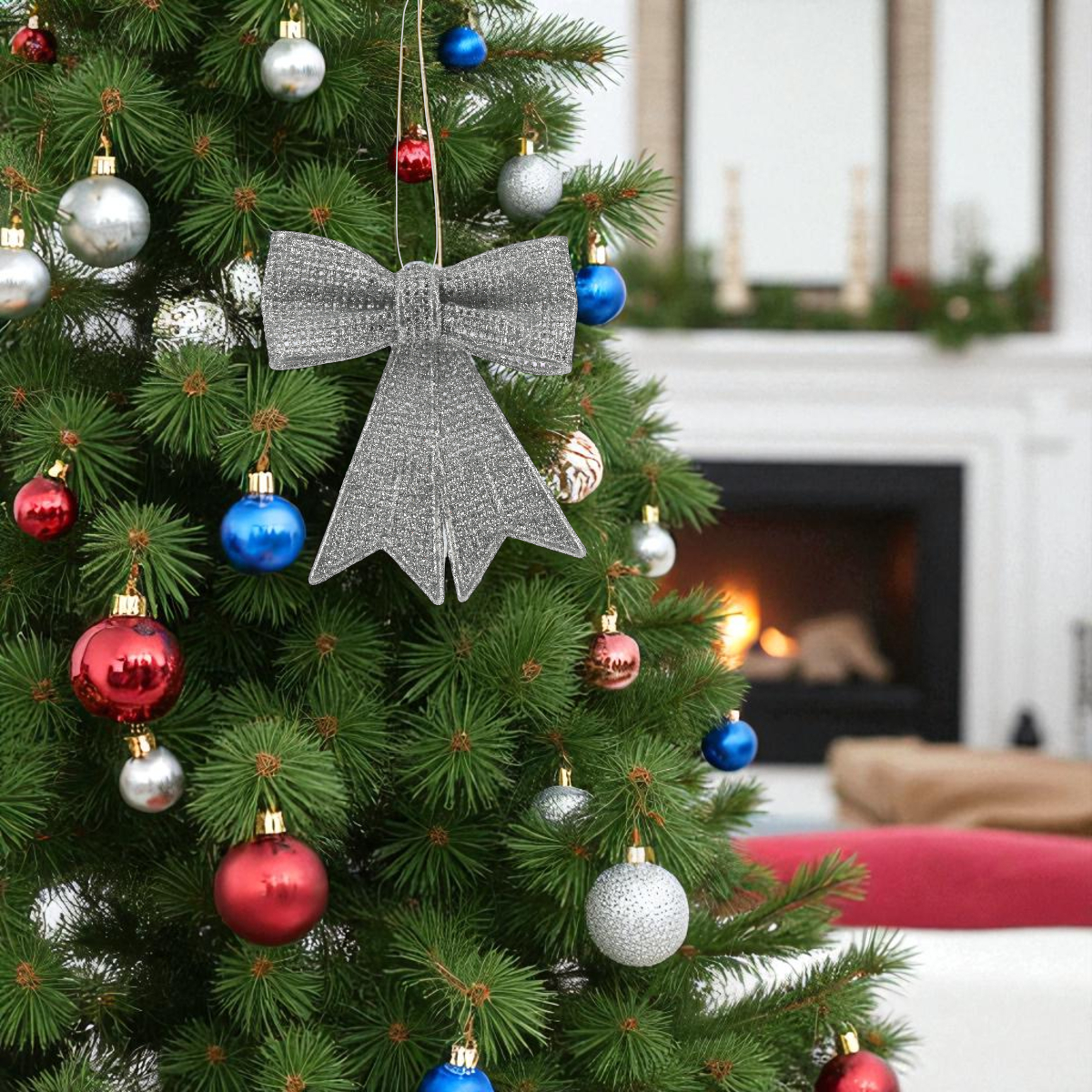 A háromféle színben elérhető masni csillogó felülettel emeli ki az ünnepi hangulatot, miközben könnyed súlya miatt bármilyen dekorációs elemhez egyszerűen rögzíthető.