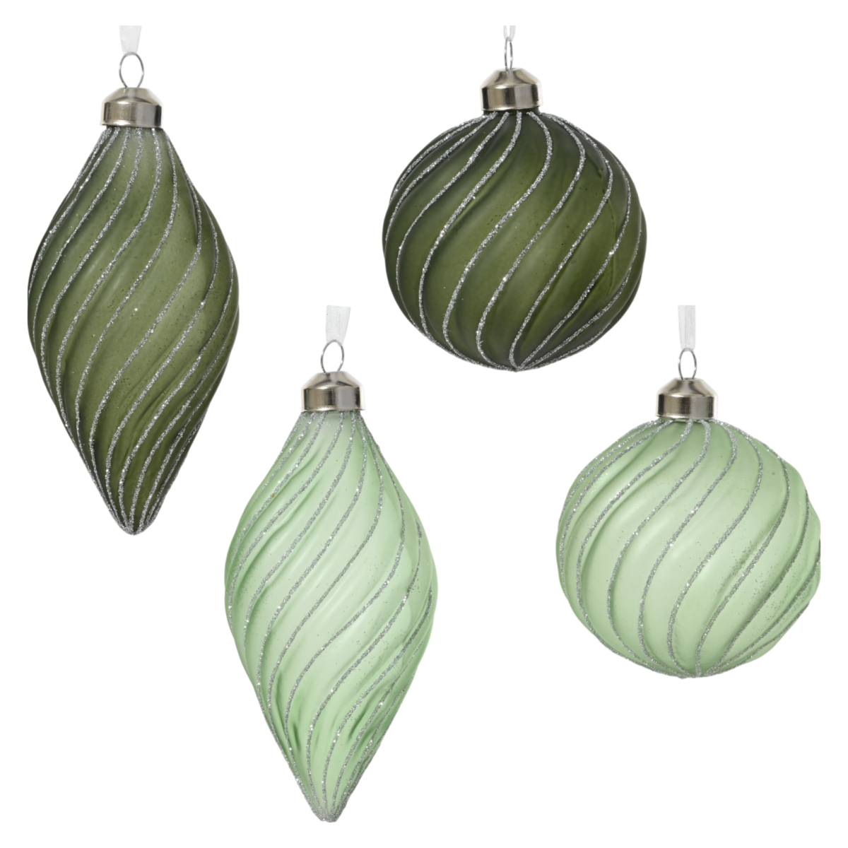 A négyféle változatban elérhető díszek kétféle formában – gömb és csepp – és két stílusos színárnyalatban – matcha zöld és rozmaringzöld – díszítik a fát vagy az ünnepi asztalt. Az ezüstösen csillogó spirálminta játékos fényt ad a díszeknek, miközben jól illeszkednek klasszikus és modern karácsonyi stílusokhoz is.