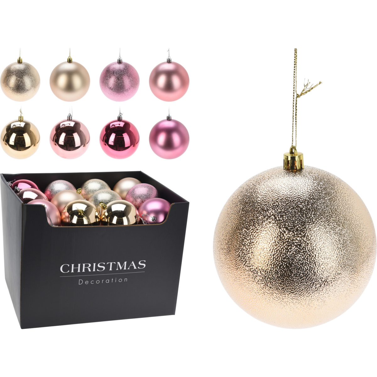 Karácsonyi hangulatú dekorációs kellék, mellyel szebbé varázsolható az otthon. Polisztirén anyagból készült, 10 cm-es méretű. Sötét pink, világos pink és arany színekben érhető el 3 féle felülettel: fényes, matt, dombornyomott. Összesen 9 féle 10 cm-es gömb közül válogathatunk. Online rendelés esetén kérjük, szíveskedjen feltüntetni az igényelt modellt a rendelés véglegesítése előtt a megjegyzés rovatban.