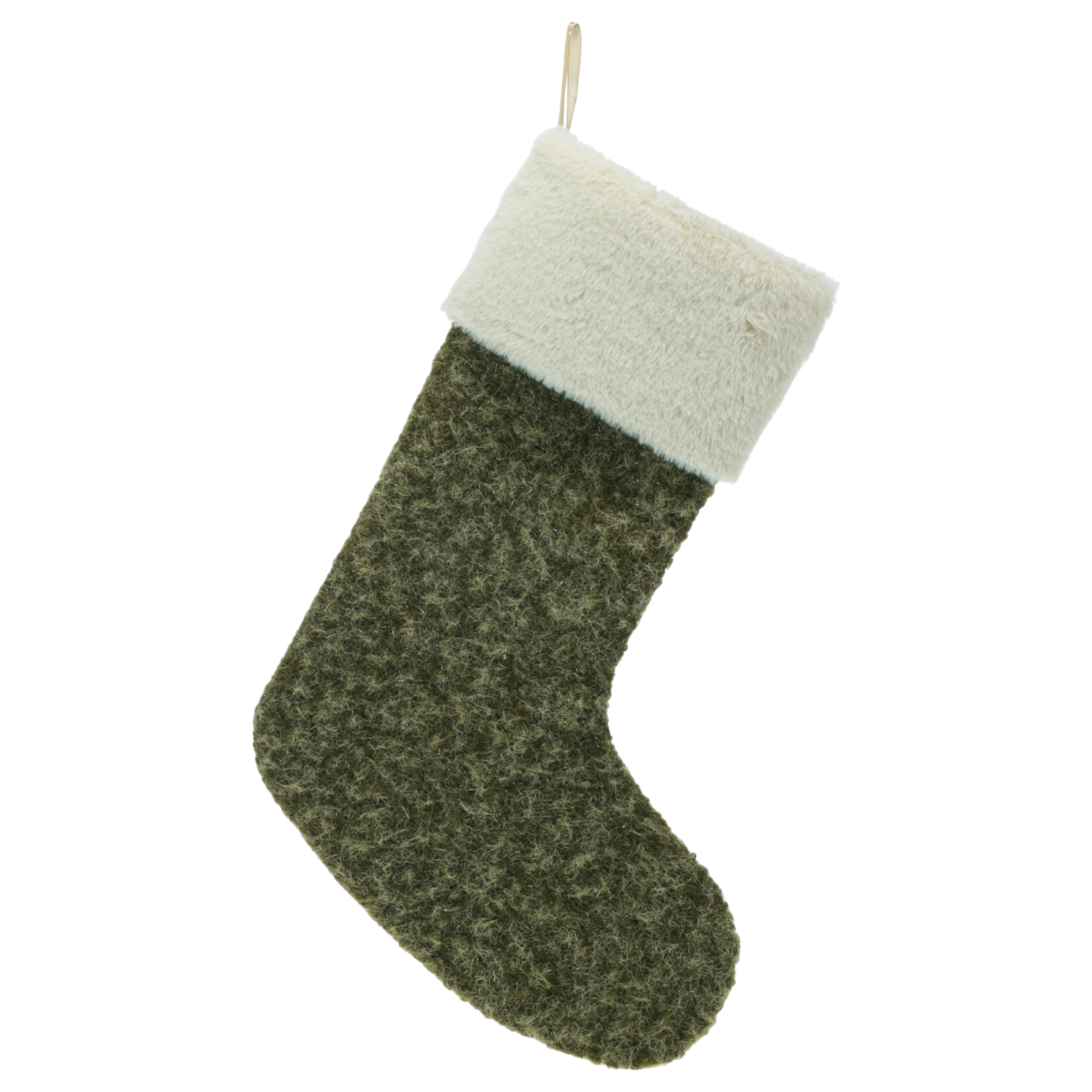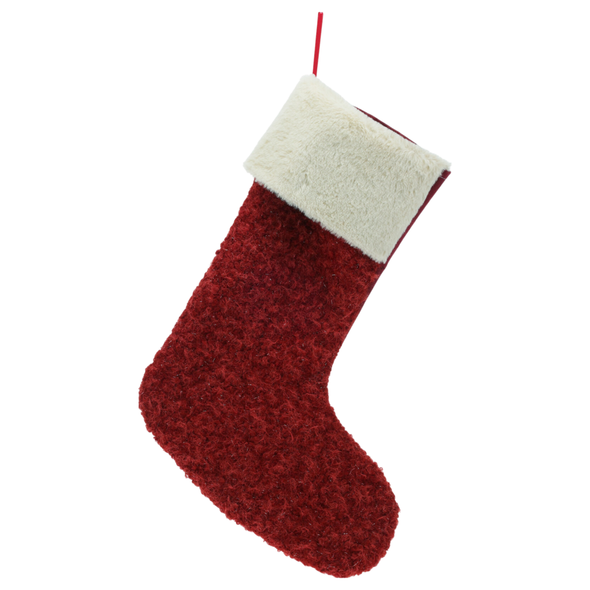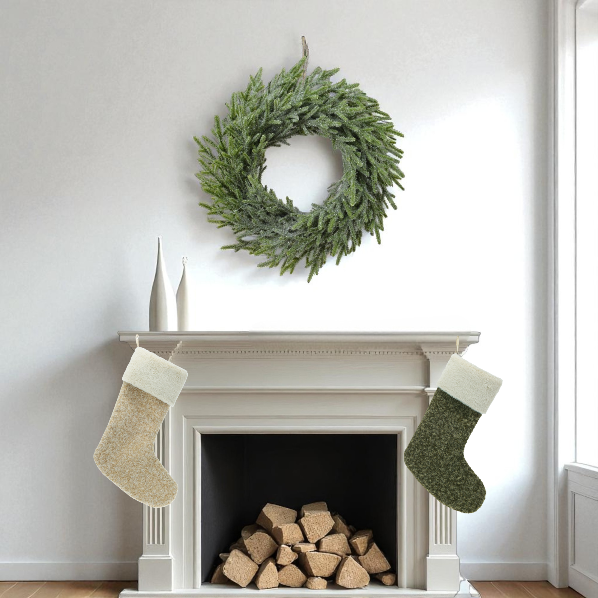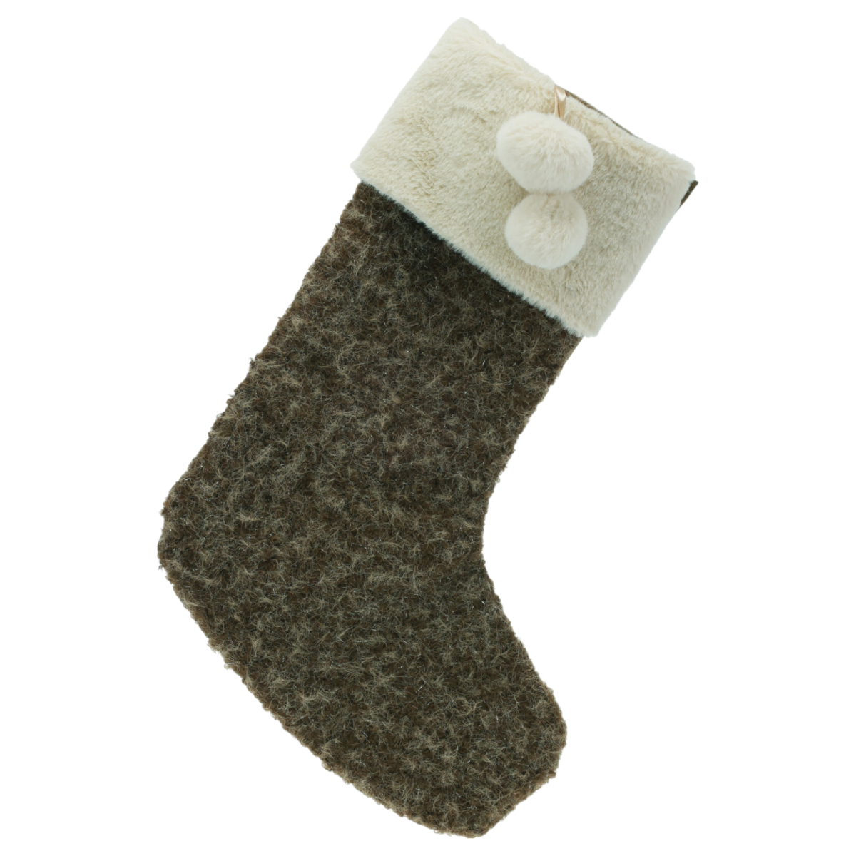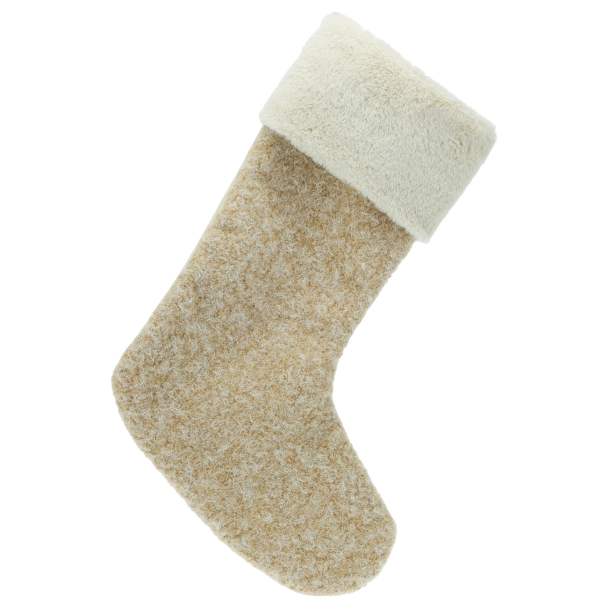 Ez a bundás szegélyű karácsonyi zokni meleg, természetes hangulatot csempész az ünnepi otthonba.