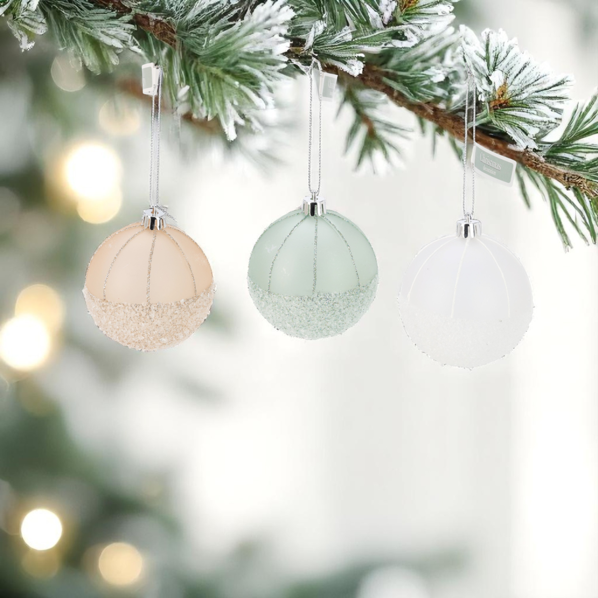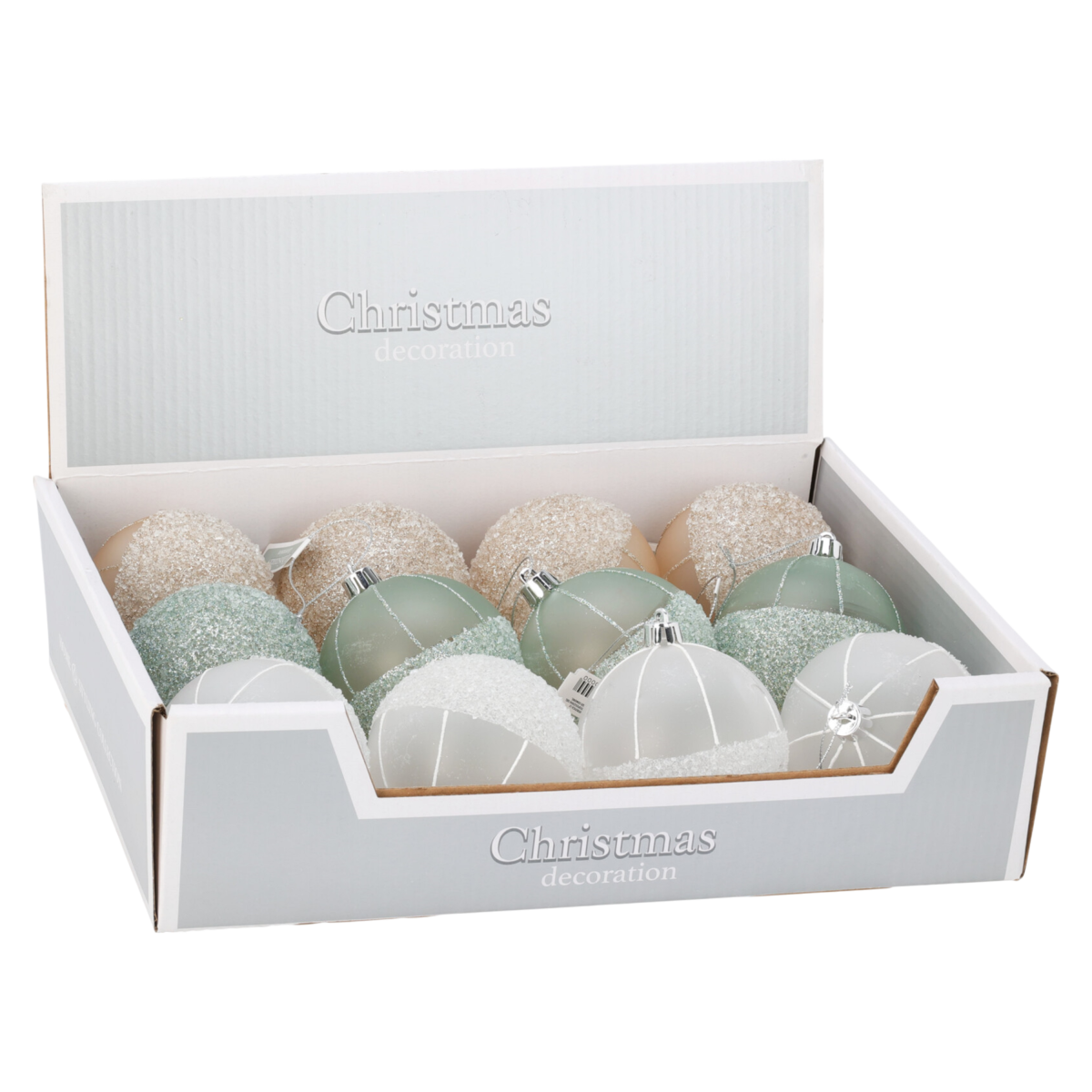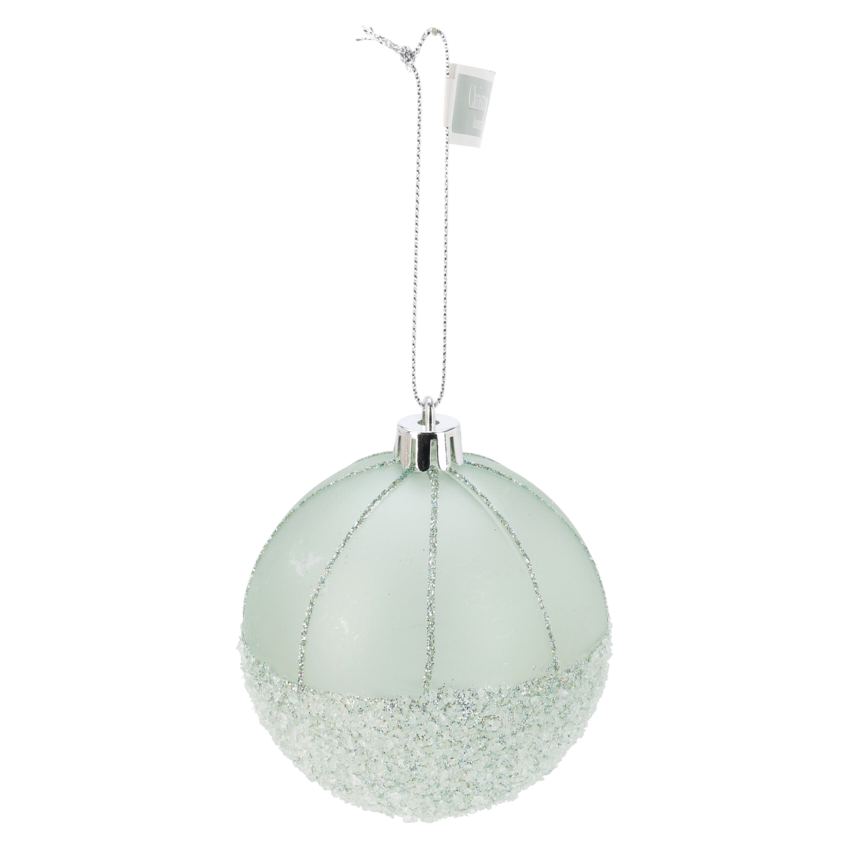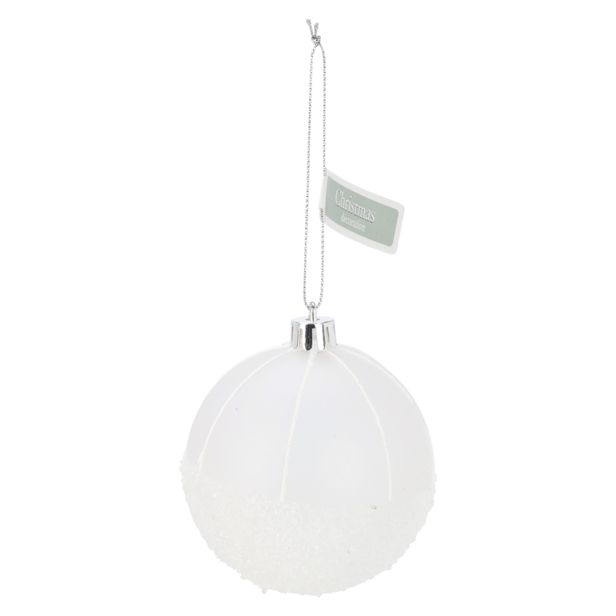 Ez a 8 cm-es, díszített műanyag gömb remek választás, ha látványos karácsonyi díszt keresel. A háromféle színváltozat – zöld, fehér és barack – lehetővé teszi, hogy különböző hangulatú dekorációkat is könnyedén megalkoss. Könnyű anyagának köszönhetően kisebb ágakra is biztonságosan felakasztható.
