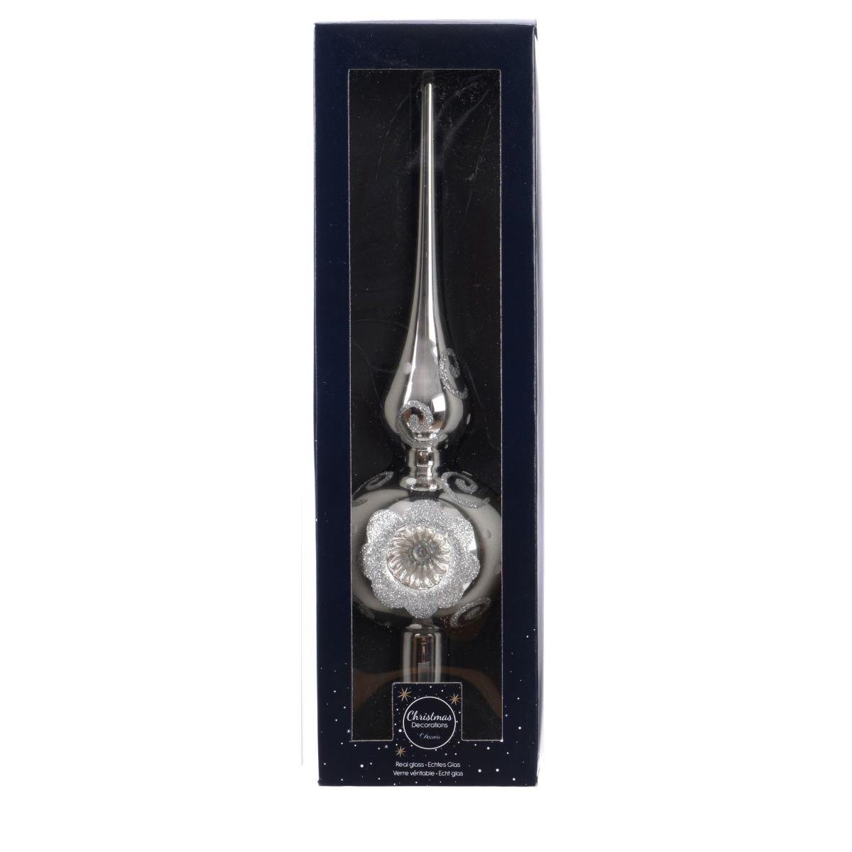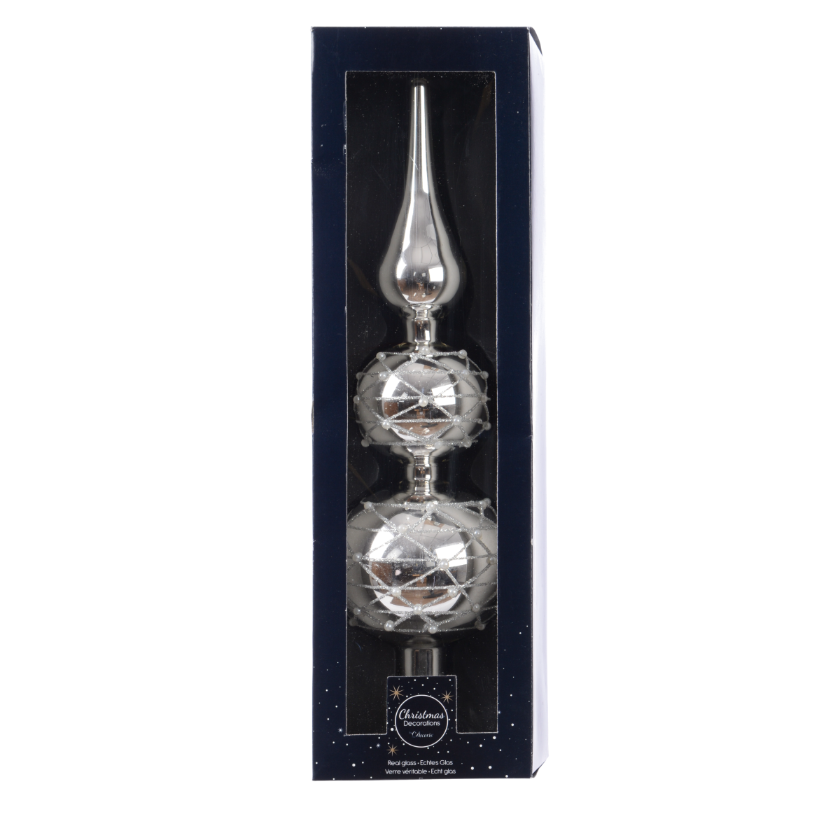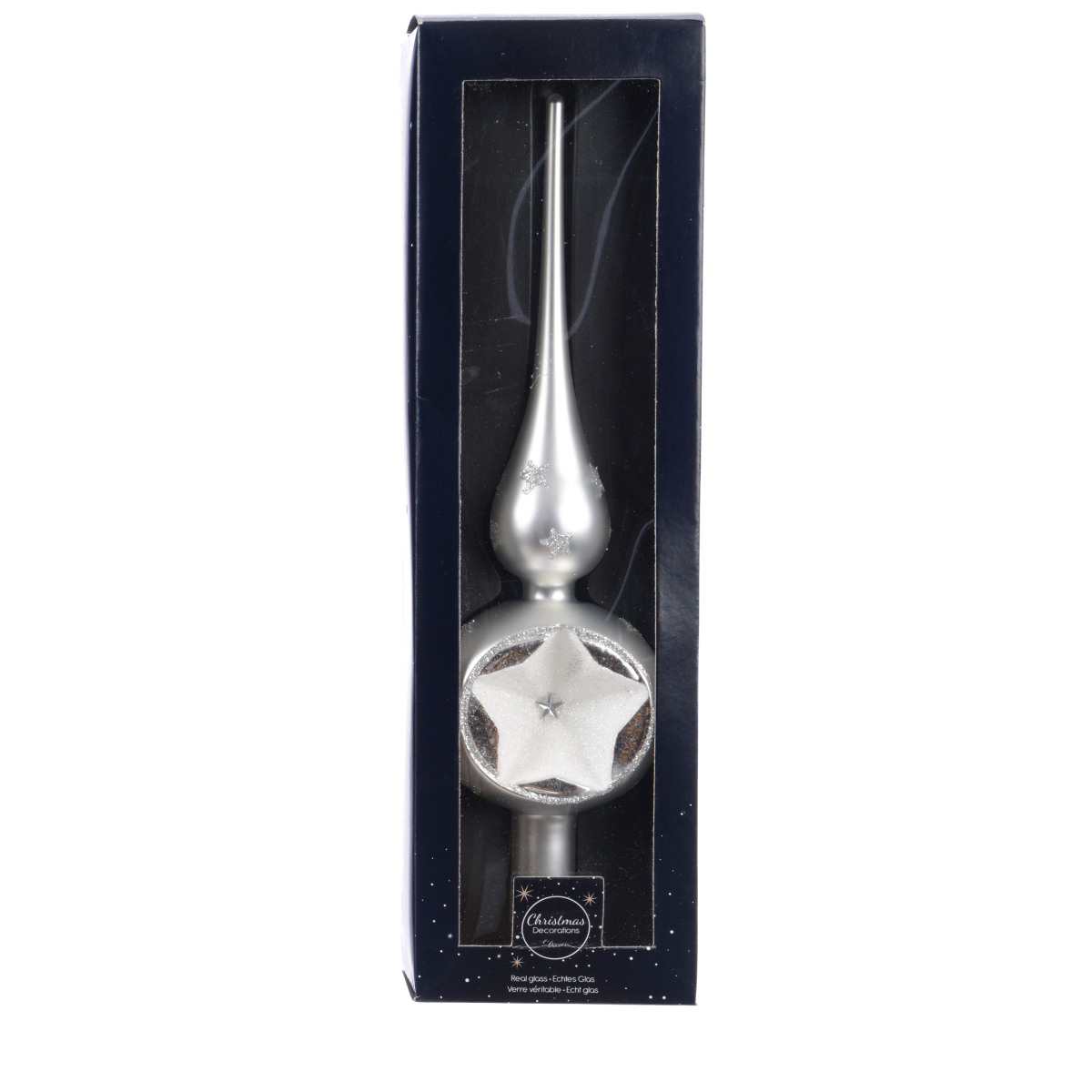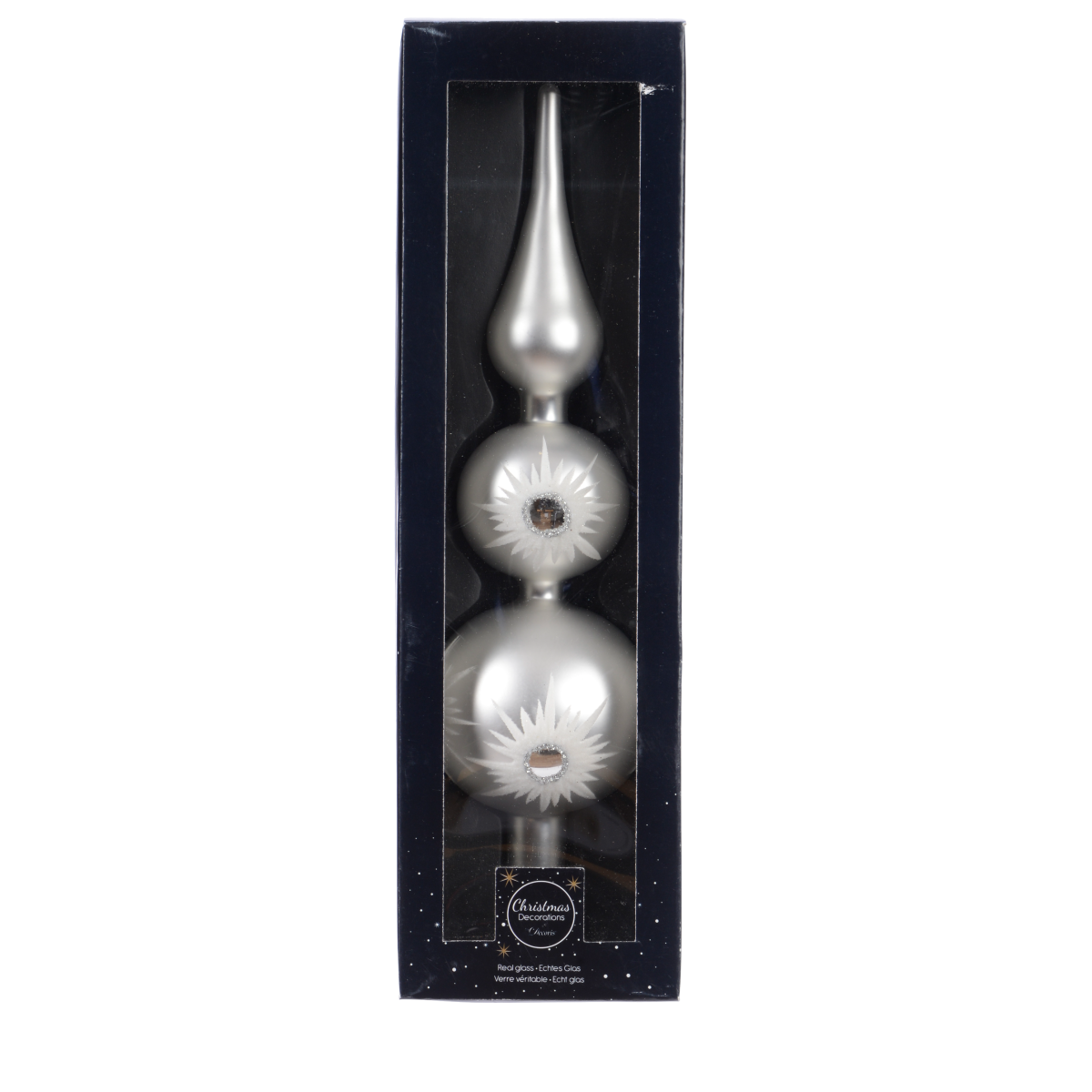 A NORAND csúcsdísz egy ízléses karácsonyi dekoráció, amely üvegből készült és 31 cm magasságú.