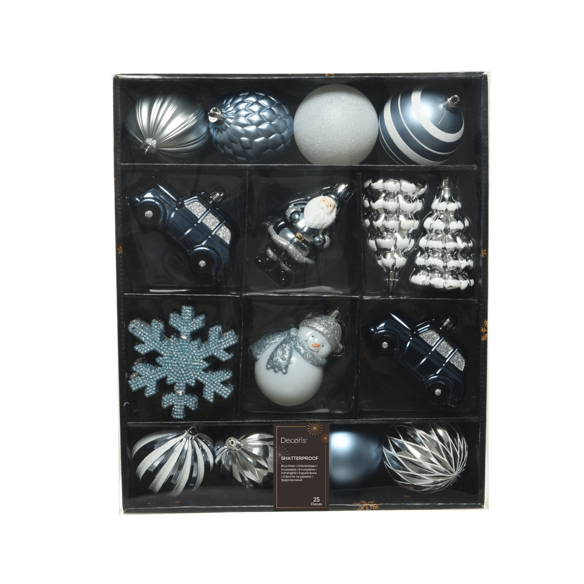 A Norand műanyag karácsonyfadísz szett egy elegáns karácsonyi dekorációs készlet, amely különböző dizájnú díszekből áll. A szettben található kék díszek matt, fényes és csillámos felületűek, így változatos textúrát és megjelenést biztosítanak a karácsonyfán. A kiváló minőségű műanyag anyaguknak köszönhetően ezek a díszek éveken át megőrzik szépségüket, hozzájárulva az ünnepi hangulat megteremtéséhez.