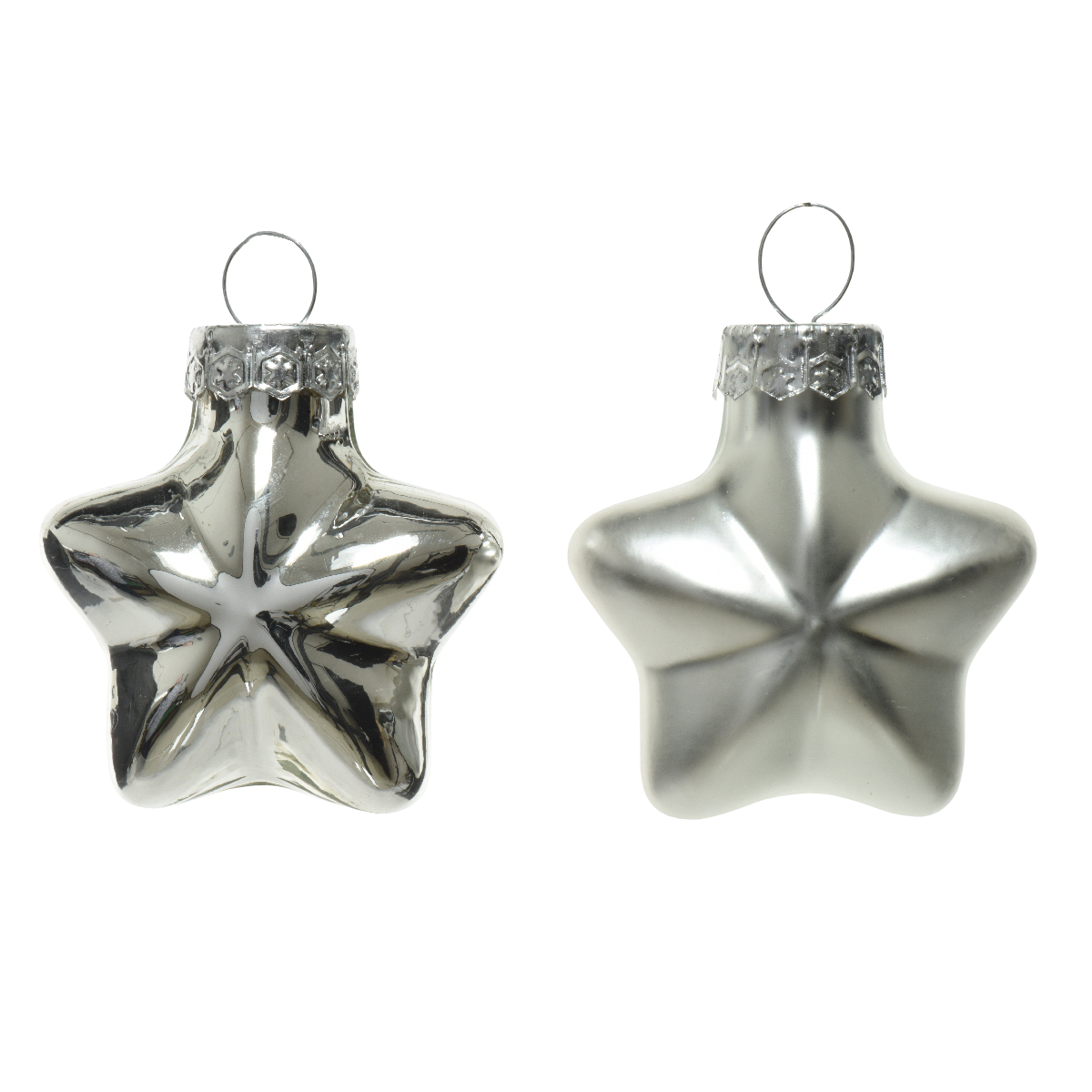 Ez a csillag alakú, üveg karácsonyfadísz szett eleganciát és meghitt hangulatot varázsol otthonodba. A 12 darab fényes és matt felületű ezüst színű dísz minden karácsonyfa díszítéséhez tökéletes választás. Csillag formájuk a meghitt hangulatot szimbolizálja, így különleges jelentést is ad a karácsonyi dekorációnak. A kiváló minőségű üveg anyag elegáns fényt kölcsönöz a díszeknek, miközben biztosítja a tartósságot, hogy éveken át pompás megjelenést kölcsönöz a karácsonyfának.