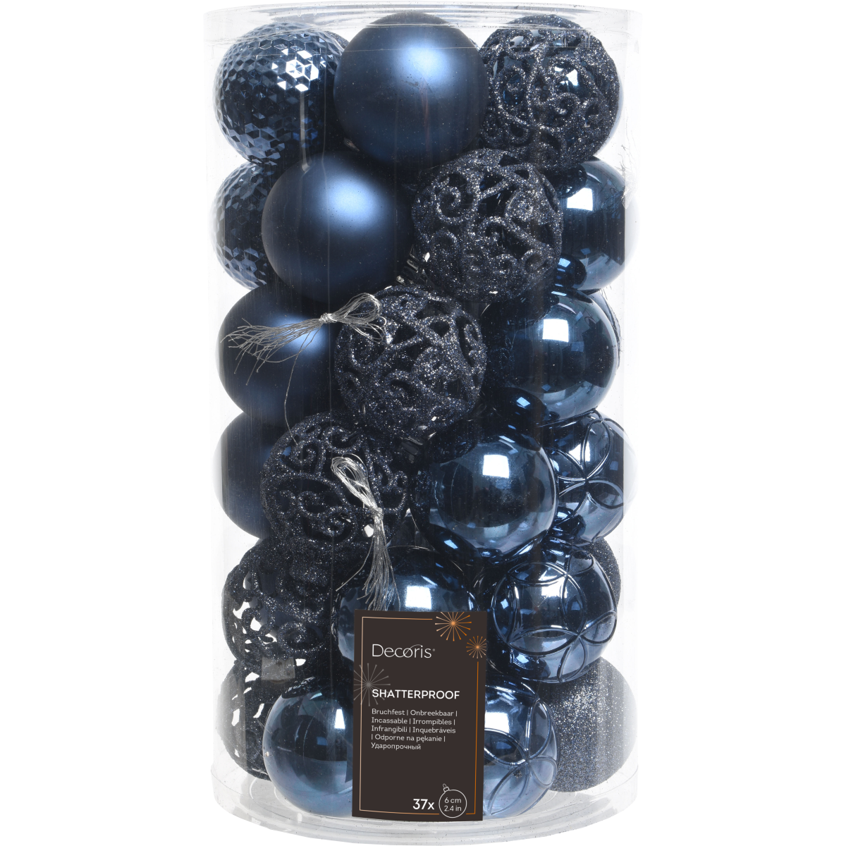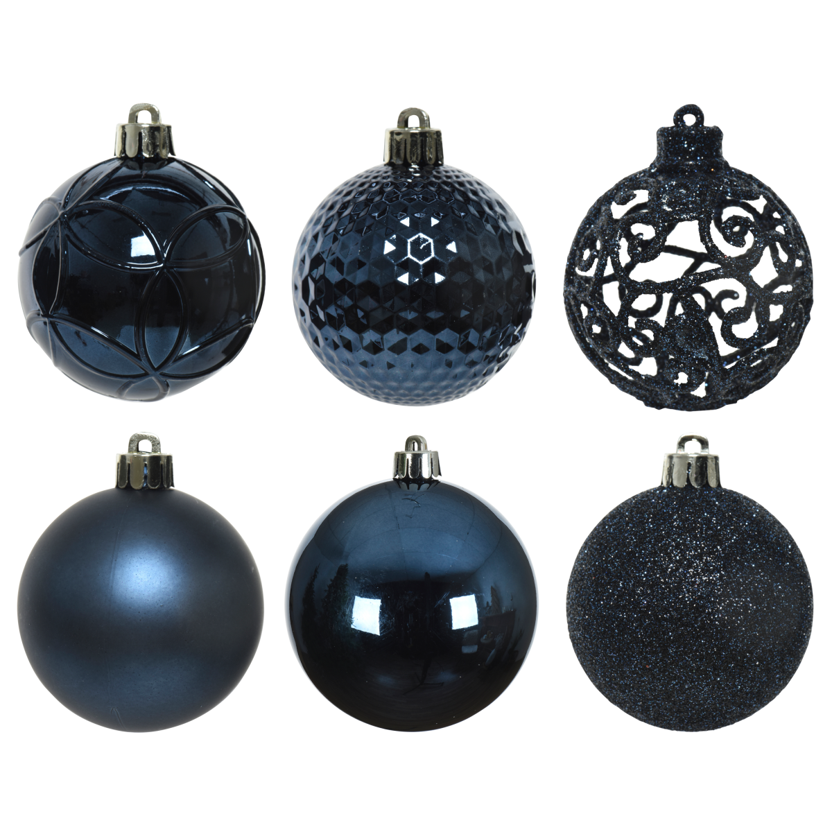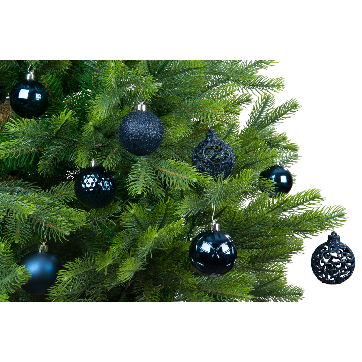 Karácsonyfadísz gömb szett 37 db-os éjkék, 6 cm-es díszek