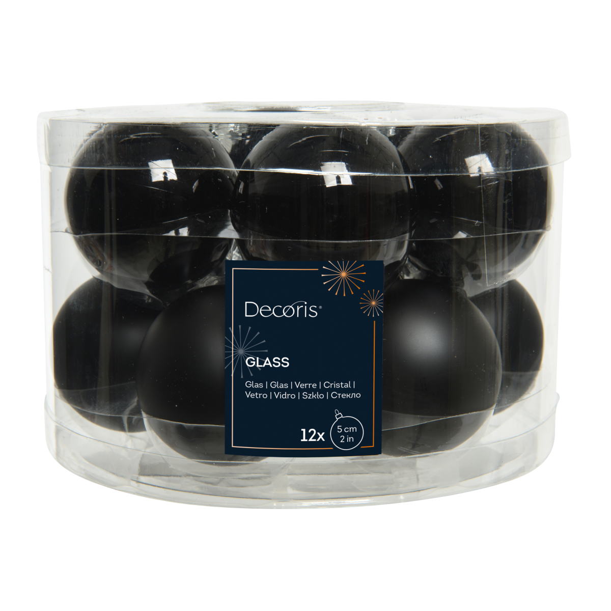 Ez a fekete színű üvegdísz szett egy elegáns karácsonyi dekorációs készlet, amely 12 darab 5 cm átmérőjű gömbből áll. A szettben található gömbök matt és fényes felületűek, így változatos textúrát és megjelenést biztosítanak a karácsonyfán. A kiváló minőségű üveg anyaguknak köszönhetően ezek a díszek éveken át megőrzik szépségüket, hozzájárulva az ünnepi hangulat megteremtéséhez.
