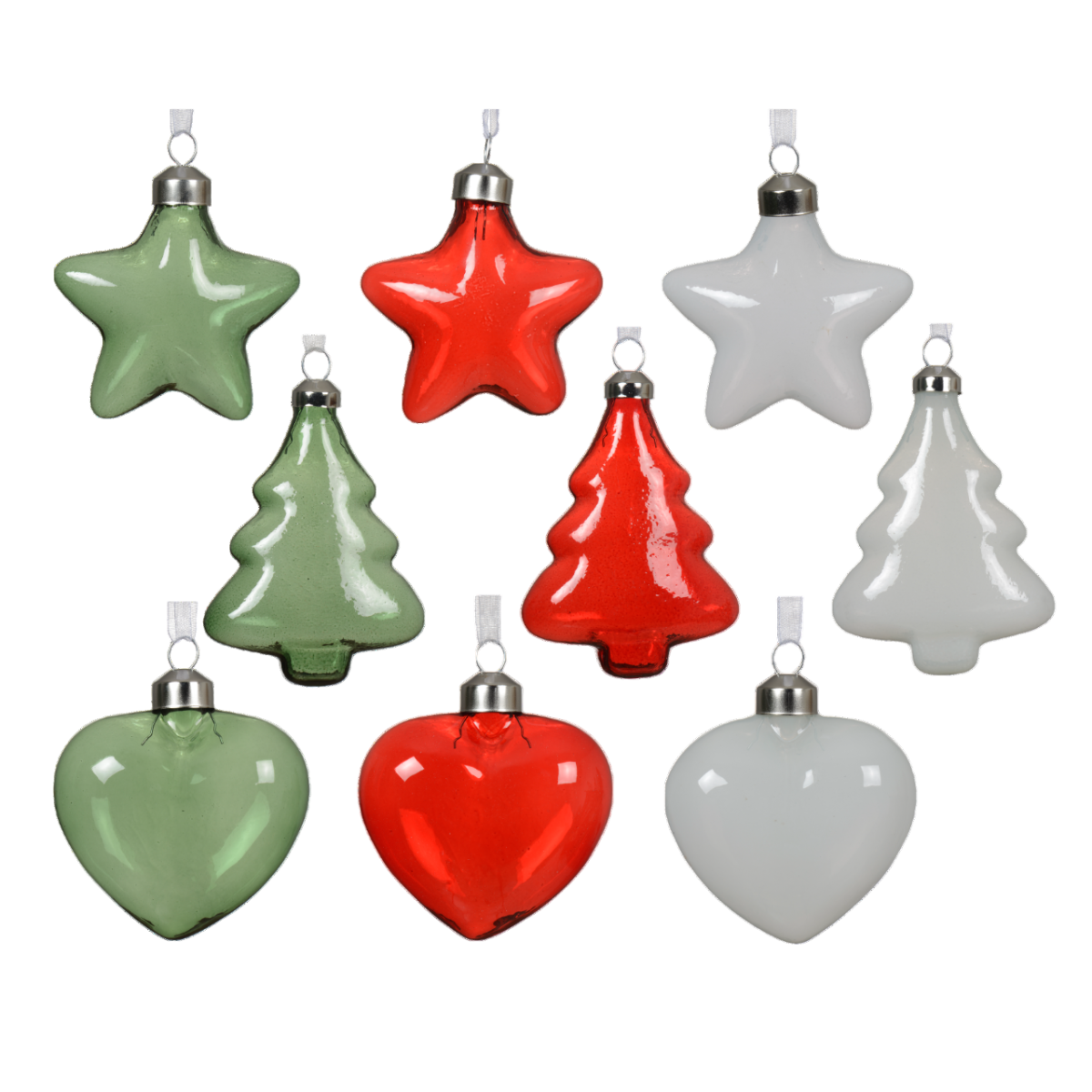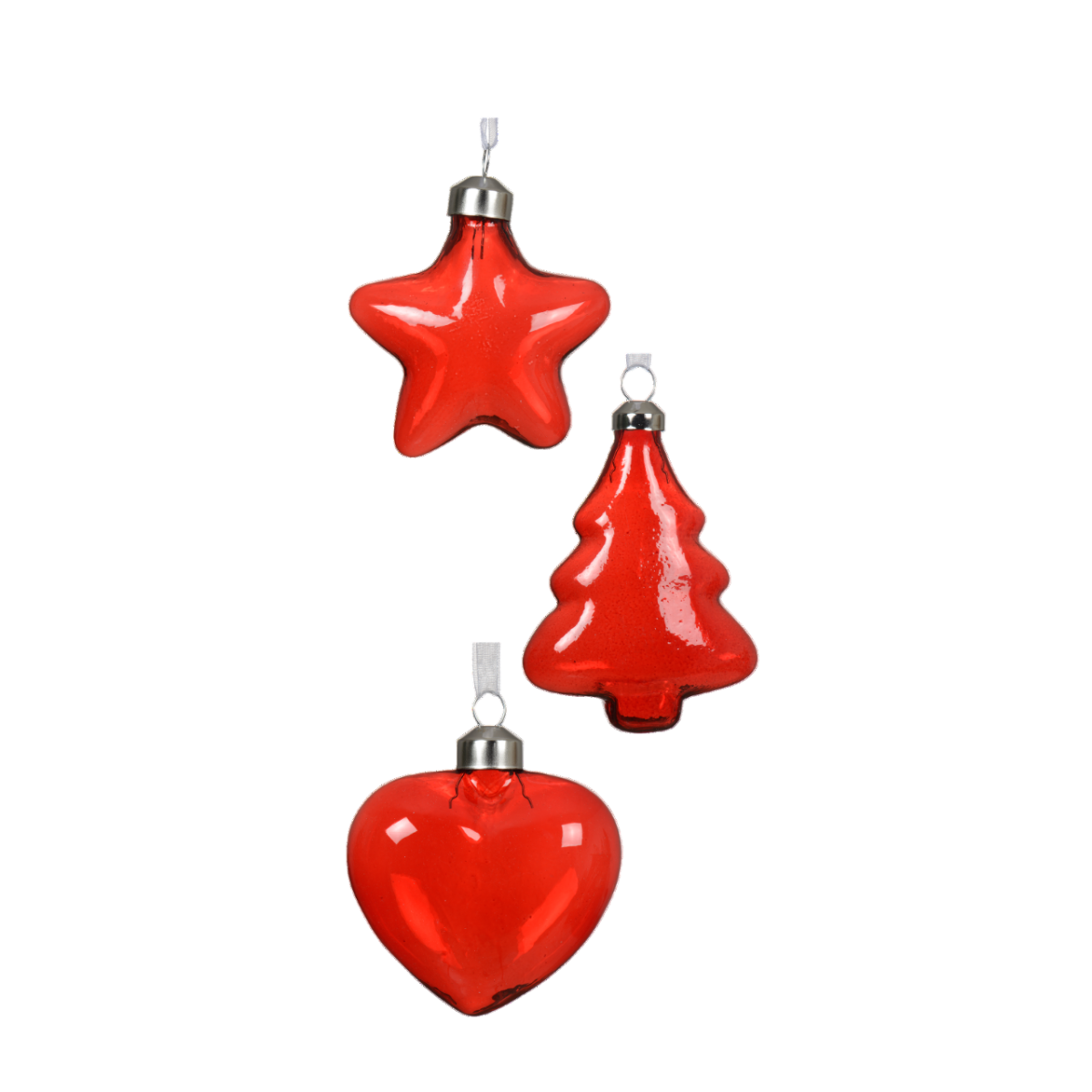 Karácsonyi hangulatú dekorációs kellék, mellyel szebbé varázsolható az otthon. A karácsonyfa, fenyőfa díszítése mellett az adventi koszorú és egyéb ünnepi dekoráció tökéletes kiegészítője is lehet. Háromféle színben (zöld, fehér, piros) és három különböző formában (szív, fenyő, csillag) elérhető üvegből készült dísz. Online rendelés esetén kérjük, szíveskedjen feltüntetni az igényelt modellt a rendelés véglegesítése előtt a megjegyzés rovatban! Továbbá kérjük, szíveskedjen előzetesen érdeklődni az igényelt modell rendelkezésre állásáról, mivel a készlet áruházanként eltérő.