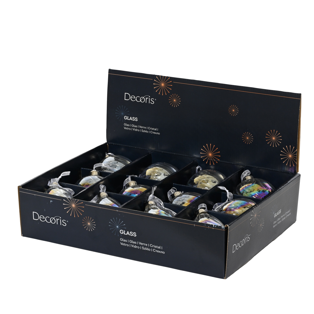 A NORAND üvegdísz egy elegáns, 8 cm átmérőjű díszítőelem, mely három különböző dizájnnal kapható. Az örvény minta egyedi és modern megjelenést kölcsönöz neki, így tökéletes választás lehet az karácsonyfa feldíszitéséhez. Az üveg anyaga miatt fényes és tiszta megjelenést biztosít, amely minden szögből más és más látványt nyújt. Ez a termék nemcsak praktikus, hanem dekoratív kiegészítője is lehet otthonának vagy irodájának.