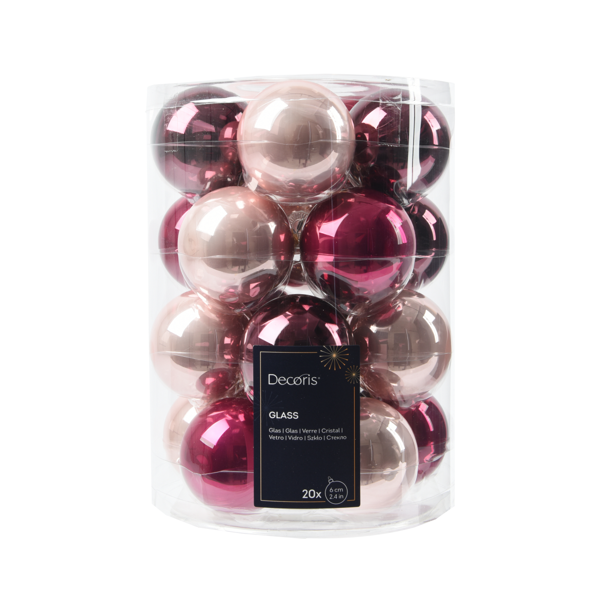 NORAND ÜVEGDÍSZ SZETT 6 CM RÓZSASZÍN VÁLOGATÁS 20 DB