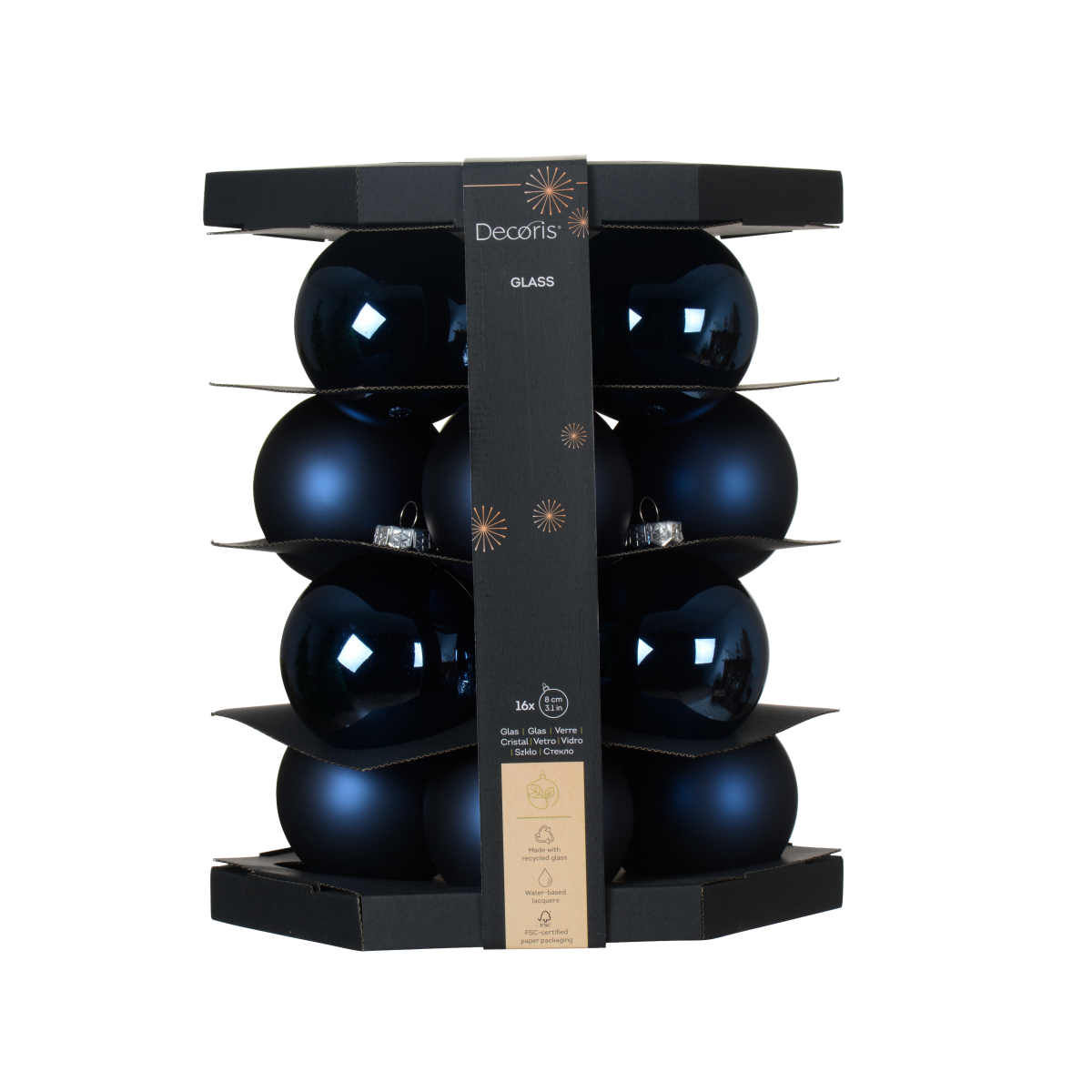 A Norand üvegdísz szett egy elegáns karácsonyi dekorációs készlet, amely 16 darab 8 cm átmérőjű gömbből áll. A szettben található kék gömbök matt és fényes felületűek, így változatos textúrát és megjelenést biztosítanak a karácsonyfán. A kiváló minőségű üveg anyaguknak köszönhetően ezek a díszek éveken át megőrzik szépségüket, hozzájárulva az ünnepi hangulat megteremtéséhez.
