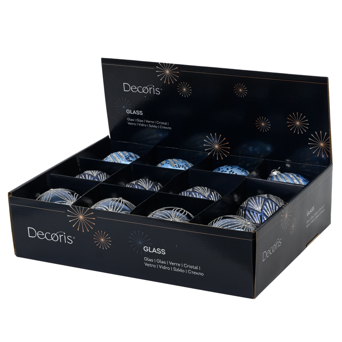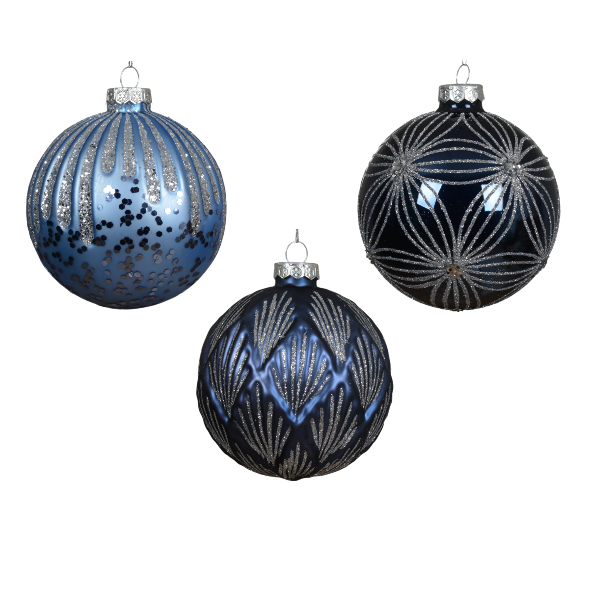 NORAND ÜVEGGÖMB 10CM KÉK DÍSZITETT 3 FÉLE
