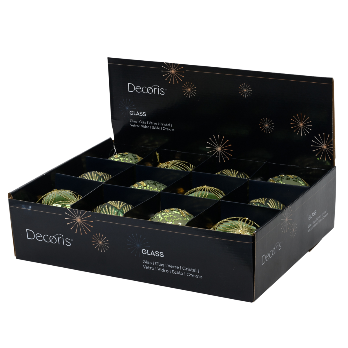 A NORAND díszített üveggömb egy 10 cm átmérőjű, elegáns karácsonyi dekoráció. Az üveg anyaga biztosítja a termék tartósságát és fényes megjelenését, míg a vegyes díszítési minták minden darabot egyedivé tesznek. Tökéletes választás lehet az ünnepi szezonban a fenyőfa vagy az otthoni dekoráció kiegészítésére.