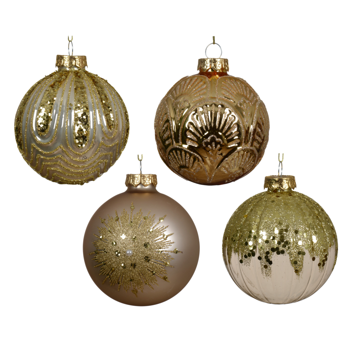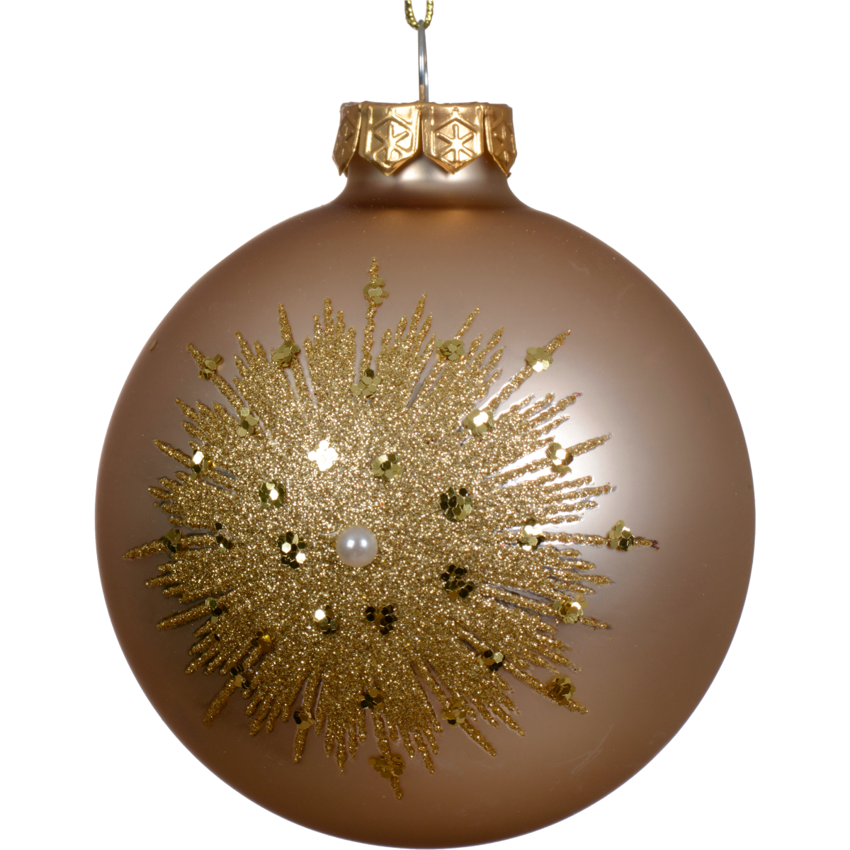 A NORAND díszített üveggömb egy 8 cm átmérőjű, elegáns karácsonyi dekoráció. Az üveg anyaga biztosítja a termék tartósságát és fényes megjelenését, míg a vegyes díszítési minták minden darabot egyedivé tesznek. Tökéletes választás lehet az ünnepi szezonban a fenyőfa vagy az otthoni dekoráció kiegészítésére.