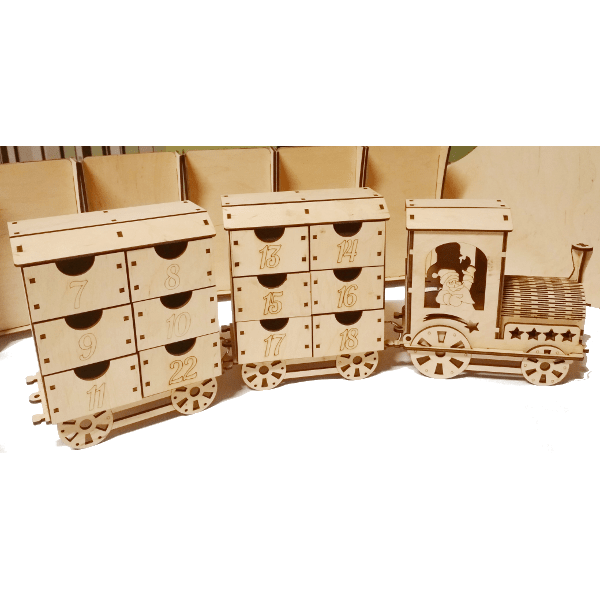 Fa vonat adventi naptár, rétegelt lemezből. Mérete: 19X28X16 cm.A Társadalmi Vállalkozások Országos Szövetsége (TAVOSZ), közel száz társadalmi vállalkozást tömörít, melyek nagyrészt hátrányos helyzetű, vagy megváltozott munkaképességű embereket foglalkoztatnak. Küldetésük, hogy a társadalmi vállalkozásokat jobb helyzetbe hozzák a piacon, és a hazai nagyvállalati szektor szereplőivel gazdasági, kereskedelmi együttműködéseket alakítsanak ki. A tagok által gyártott termékeket - melyek többnyire lakásdekorációs és lakástextil termékek - az ÖkoDeko fantázianév alatt értékesítik.