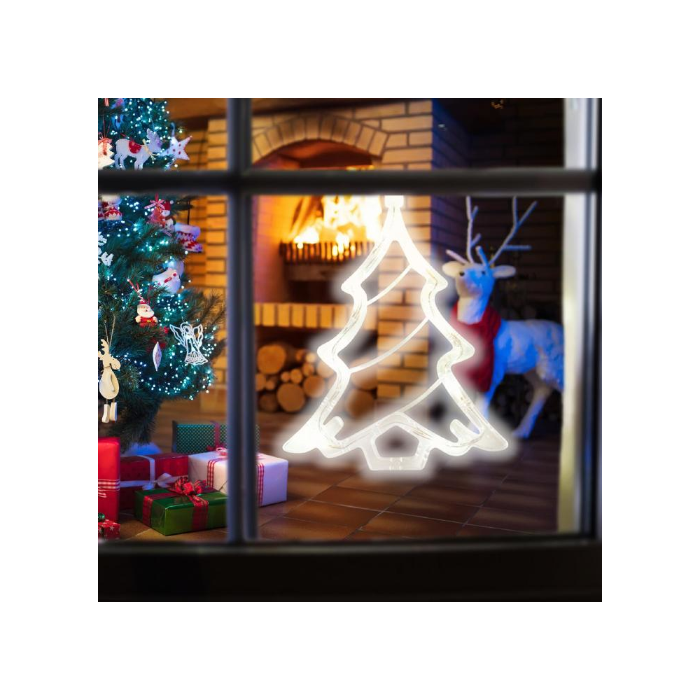 8 db Ledet tartalmazó beltéri karácsonyfa alakú ablakdísz, 20 cm átlátszó vezetékkel, öntapadós elemtartóval. Tápellátás:3 x 1,5 V (AAA) elem, mely nem tartozéka a terméknek. Ezzel a karácsonyi dekorációs eszközzel meghittebbé varázsolhatjuk a helyiséget.