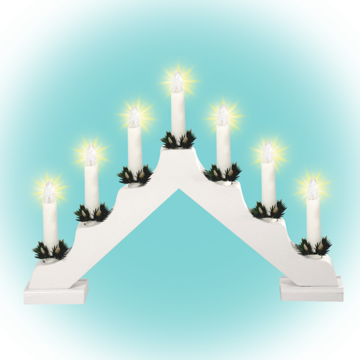 Ez a 7 izzós, fehér színű ablakív elegáns és modern dekoráció, amely meghitt, karácsonyi atmoszférát teremt otthonában. A gyertyára hasonlító izzók piramis alakban helyezkednek el, és meleg, meghitt fényt árasztanak. Ideális választás ünnepi dekorációhoz, romantikus estékhez vagy akár mindennapi használathoz. Az ablakíven lévő fényforrások L 7D csavaros izzók, melyek könnyen pótolhatók. A 1.5 méter hosszú vezetékkel magasabb ablakpárkányokon is kényelmesen elhelyezhető az ablakív. Hozzon létre varázslatos hangulatot otthonában és tegye izgalmassá az ünnepi várakozást ezzel a stílusos ablakívvel!